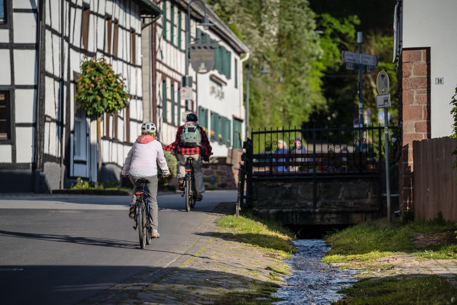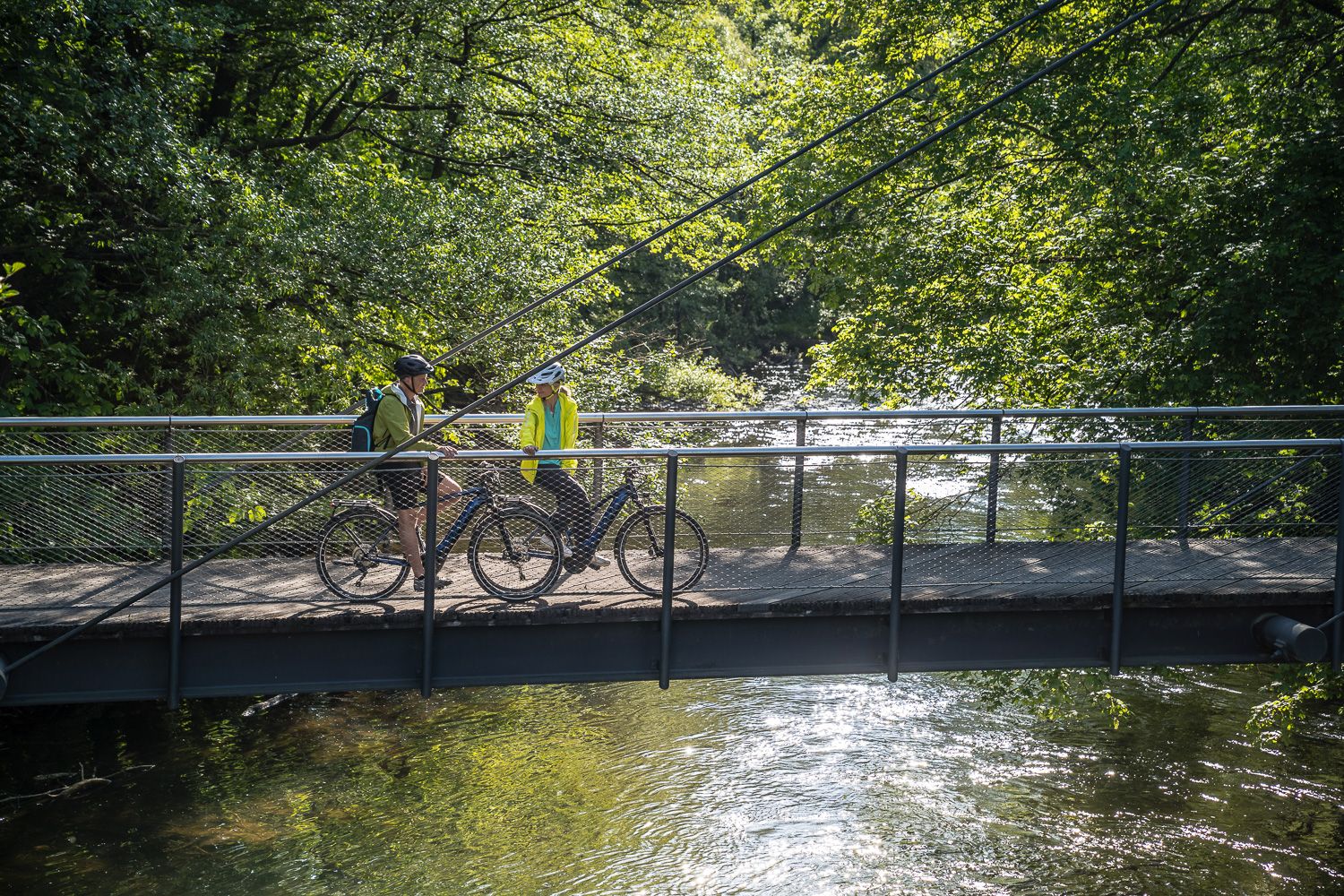 Dabei durchfahren wir sehr unterschiedliche naturgeschützte Landschaften: Die offene Moorlandschaft des Naturparks Hohes Venn in Belgien, den Nationalpark Eifel mit seinen Wäldern und den von Heide, Wald und Mooren geprägten Nationalpark De Meinweg in den Niederlanden. Der Verlauf eines Flusses bietet unzählige Themen. Wir machen sie an den Orten und Landschaften fest, durch die wir fünf Tage lang gemeinsam radeln. Naturschutz wird uns in den Großschutzgebieten Hohes Venn und Nationalpark Eifel begegnen. Auf die Themen Krieg, Frieden und Menschenrechte treffen wir, wenn wir die Anlage der damals von den Nationalsozialisten so genannten NS-Ordensburg Vogelsang besuchen. Heute ist sie internationaler Lernort und Nationalpark-Zentrum. Die Nationalsozialisten prägten mit der Anlage Vogelsang die Eifellandschaft neu – durch die Nutzung als NATO-Truppenübungsplatz Camp Vogelsang während des Kalten Krieges sogar bis ins 21. Jahrhundert hinein.