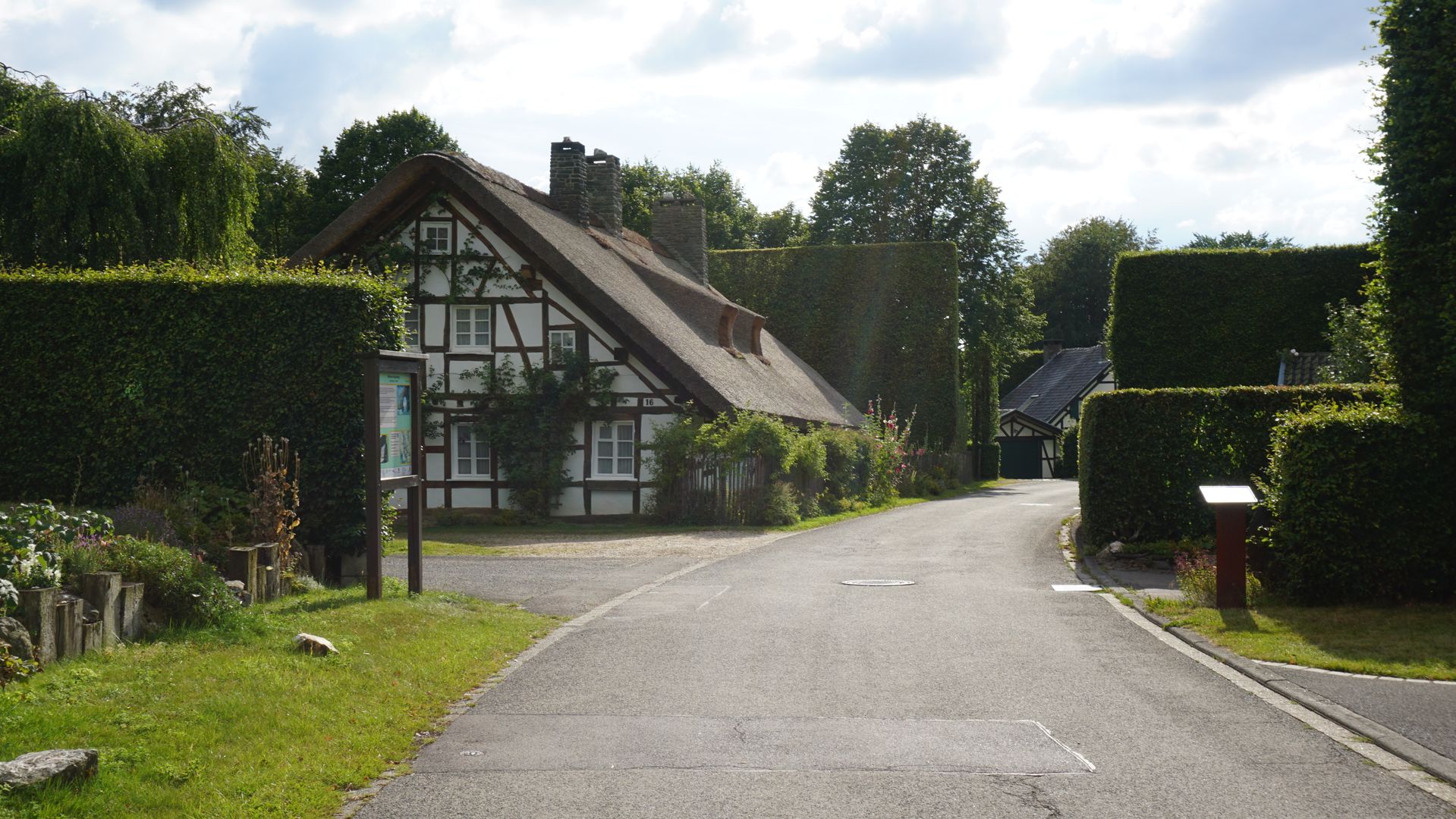 Gut gestärkt führt dich der Schlemmerrundgang zurück Richtung Monschau durch das malerische Heckendorf Höfen mit seinen Fachwerkhäusern und den meterhohen Hecken am Wegesrand. Schließlich wanderst du über den Mühlenberg bergab zurück zum Tuchmacherbrunnen auf dem Marktplatz. Gleich neben dem Brunnen deine Genusswanderung mit ausgesuchten süßen Leckereien.