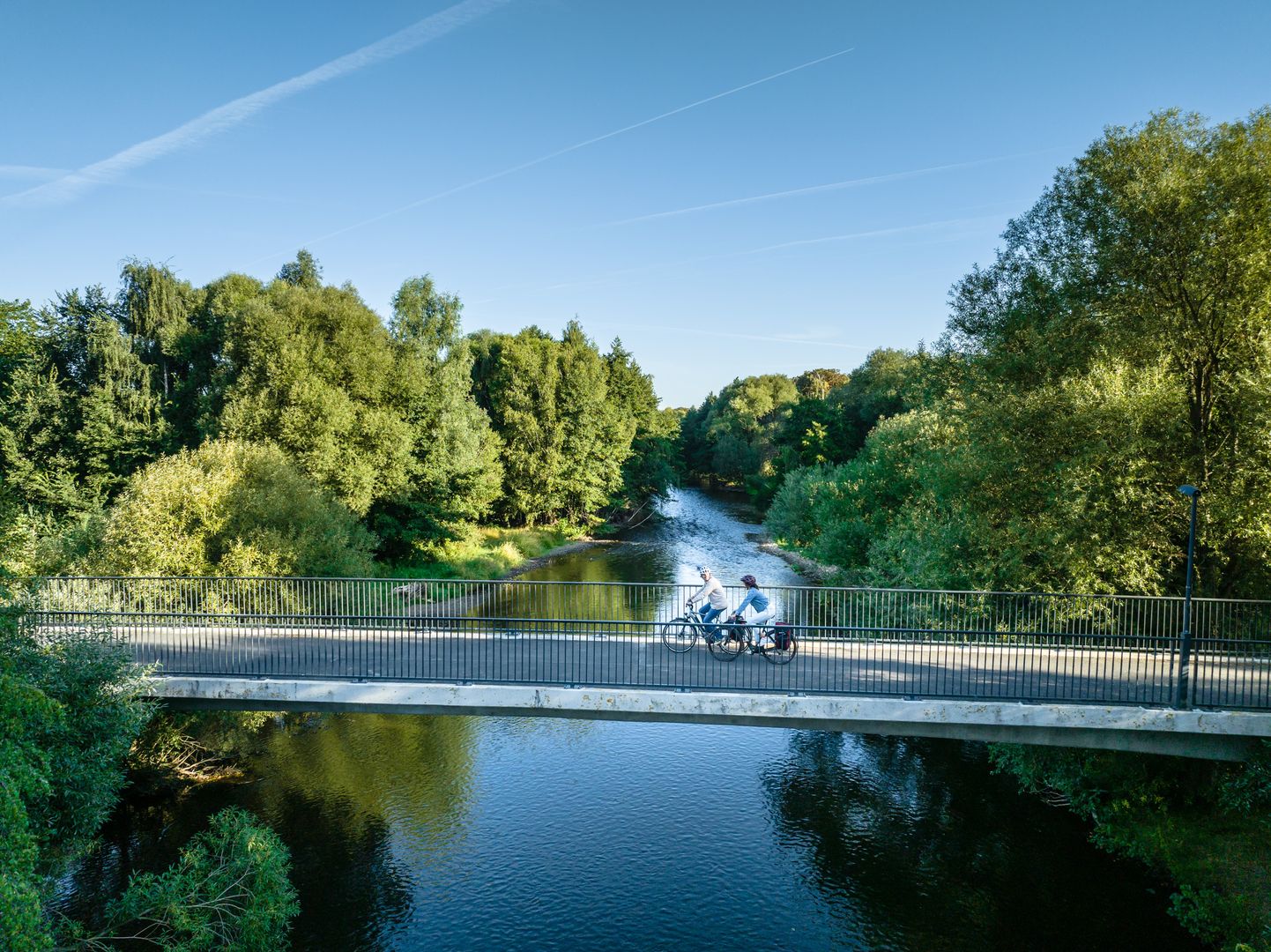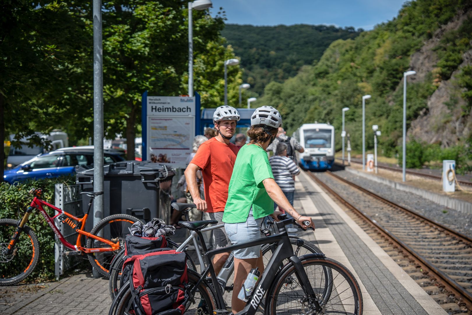 The red sandstone cliffs accompany the cyclists on their cycle tour, accompanied by the water, they pass Abenden - with its half-timbered houses, the town is a picture of how rooted the people are in their region. Pedal by pedal, the e-bike takes you effortlessly towards the Eifel National Park, where nature is allowed to be nature. The route runs along the meandering Rur to Heimbach. From there, the Rur Valley Railway takes cyclists back to their starting point.