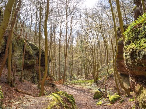 In the Eifel, rocks can tell stories - this circular tour is all about the famous rocks of Nideggen. The "Effels" itself, the striking group of rocks here, tells you about its life along the leisurely hiking route. The popular red sandstone rocks are not only pretty to look at, they are also of great importance to people and the flora and fauna that live here. The typical red coloring also indicates a desert climate characterized by great dryness and rare but heavy rainfall during the time when the rock layer was formed.