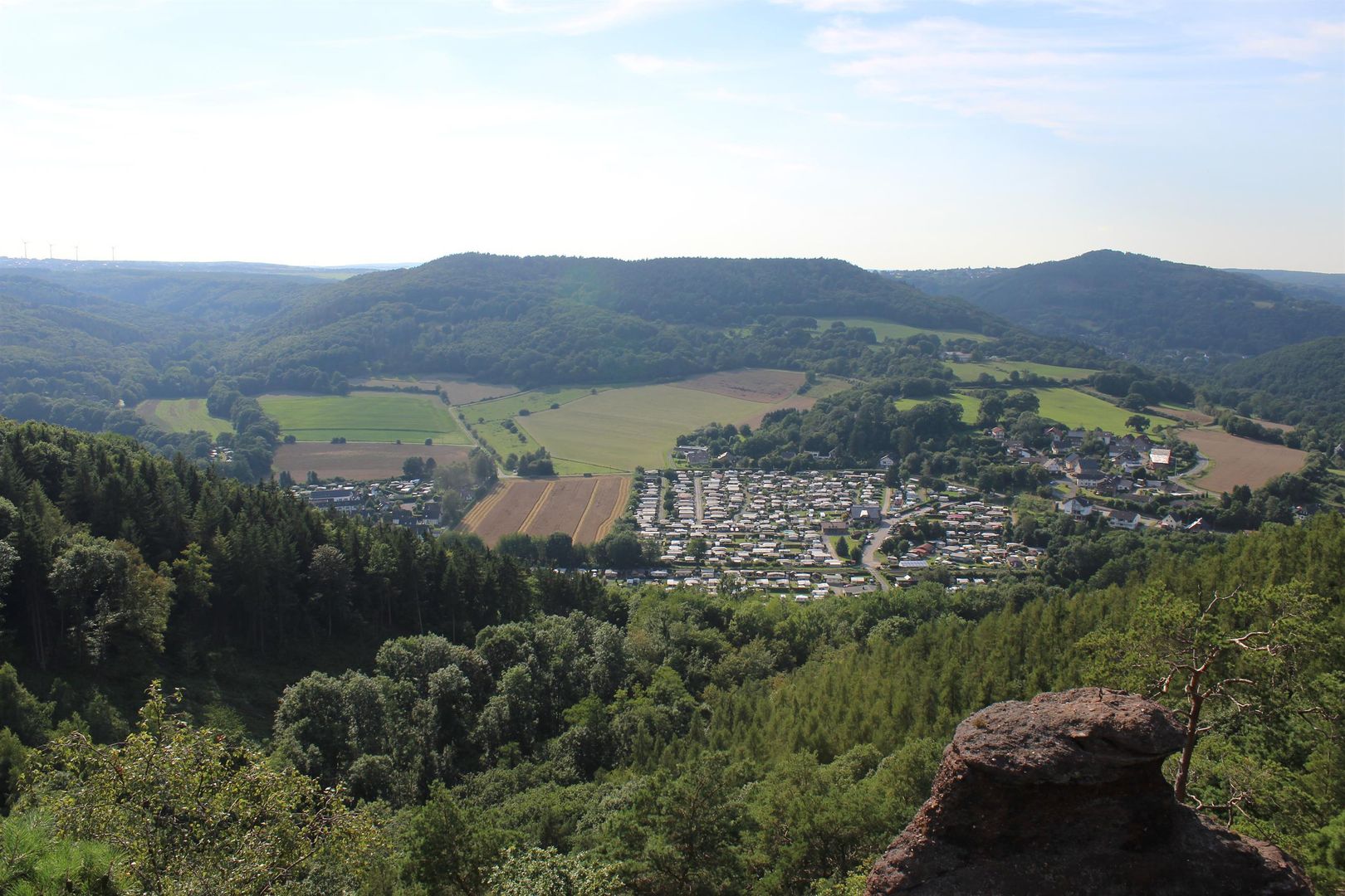 En direction du sud-ouest et du nord-ouest, vous avez une vue sur les contreforts nord du parc national de l'Eifel, sur la vallée moyenne de la Rur et au-delà, jusque sur le plateau de la Rur-Eifel.