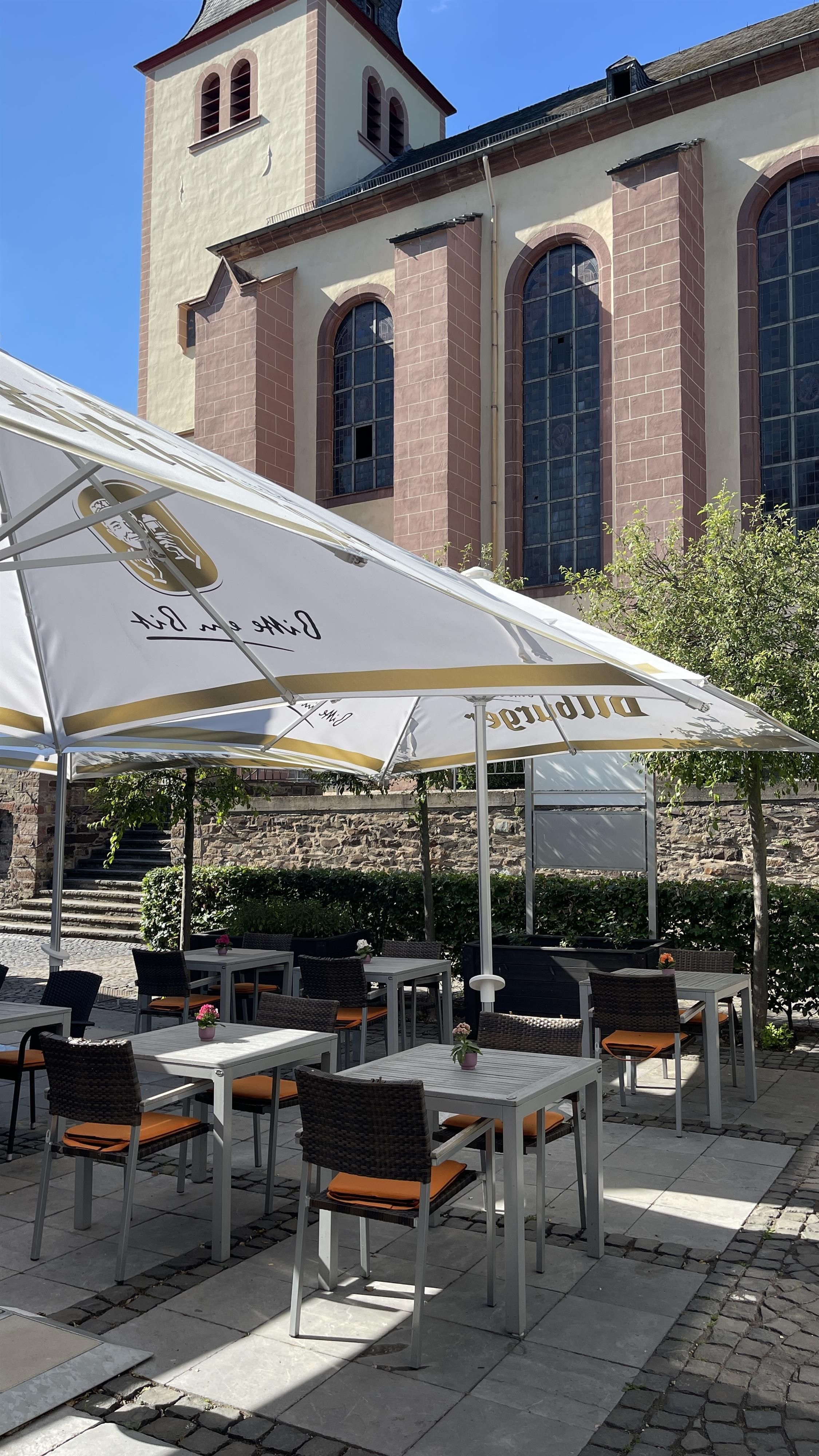 Das Café EifelGarden, direkt an der Pfarrkirche St. Clemens in Heimbach gelegen, lädt auf mehreren Ebenen und einer wunderschönen grünen Terasse zum verweilen ein.