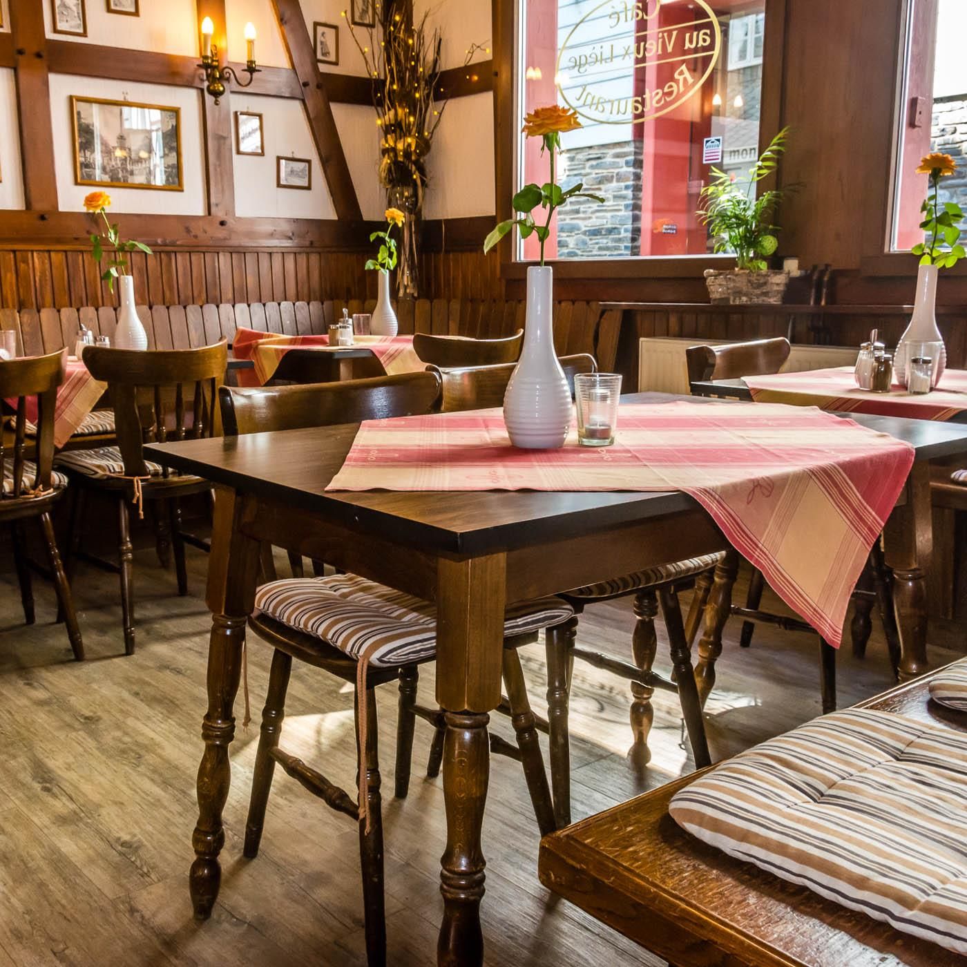 Das Café-Restaurant befindet sich im Herzen der Monschauer Altstadt. Es verfügt über eine ganzjährig überdachte und bei Bedarf beheizte Terasse, die direkt über der Rur liegt.