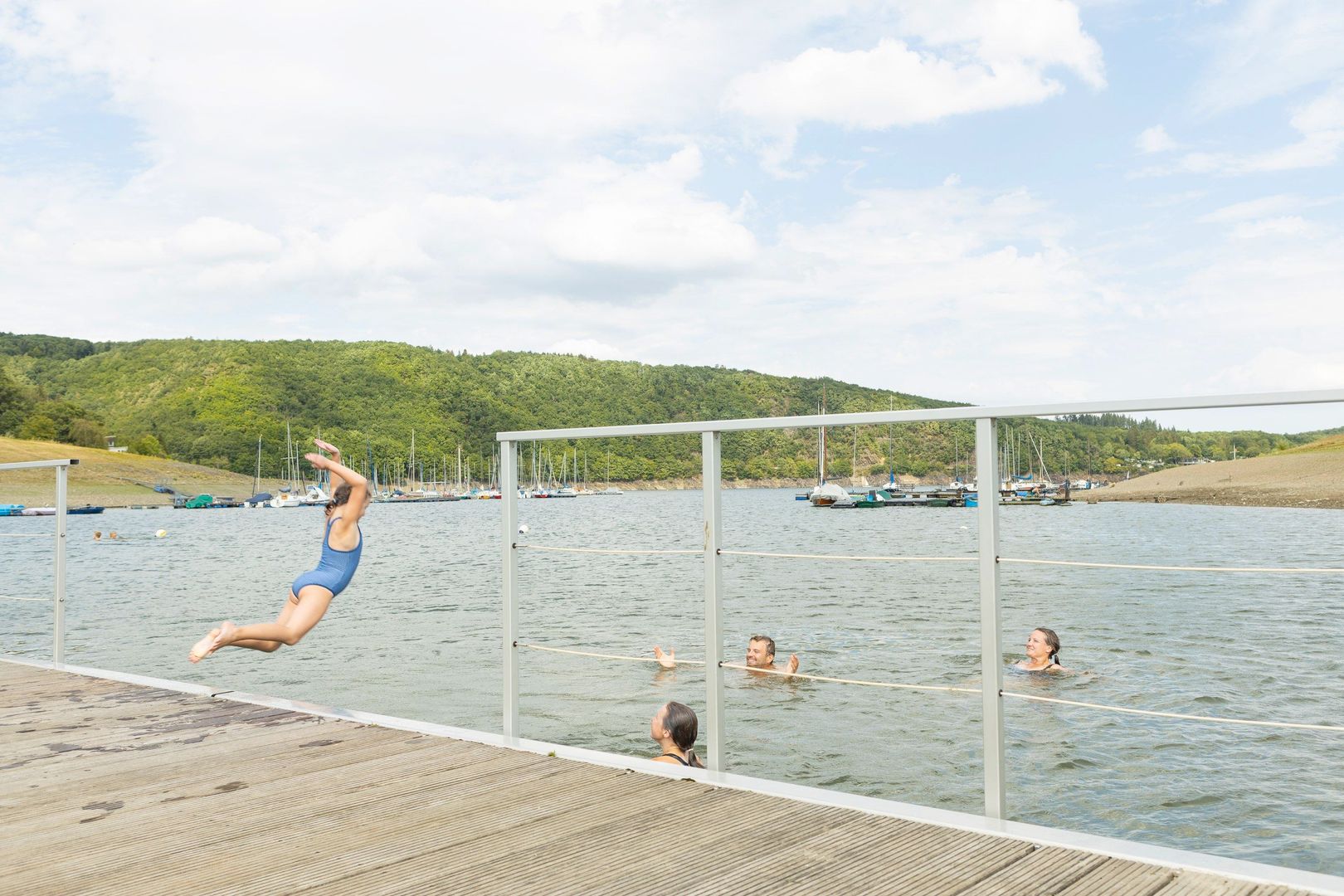 Die Sommersonne lacht vom Himmel und lässt den Rursee in seinen schönsten Farben glitzern. Wenn die Temperaturen am Thermometer stetig nach oben klettern, sind die vier Naturbadestellen am Rursee ein echter Segen. Ob große oder kleine Wasserratten – Badespaß ist hier garantiert, genauso wie genügend Freiraum zum Entspannen.