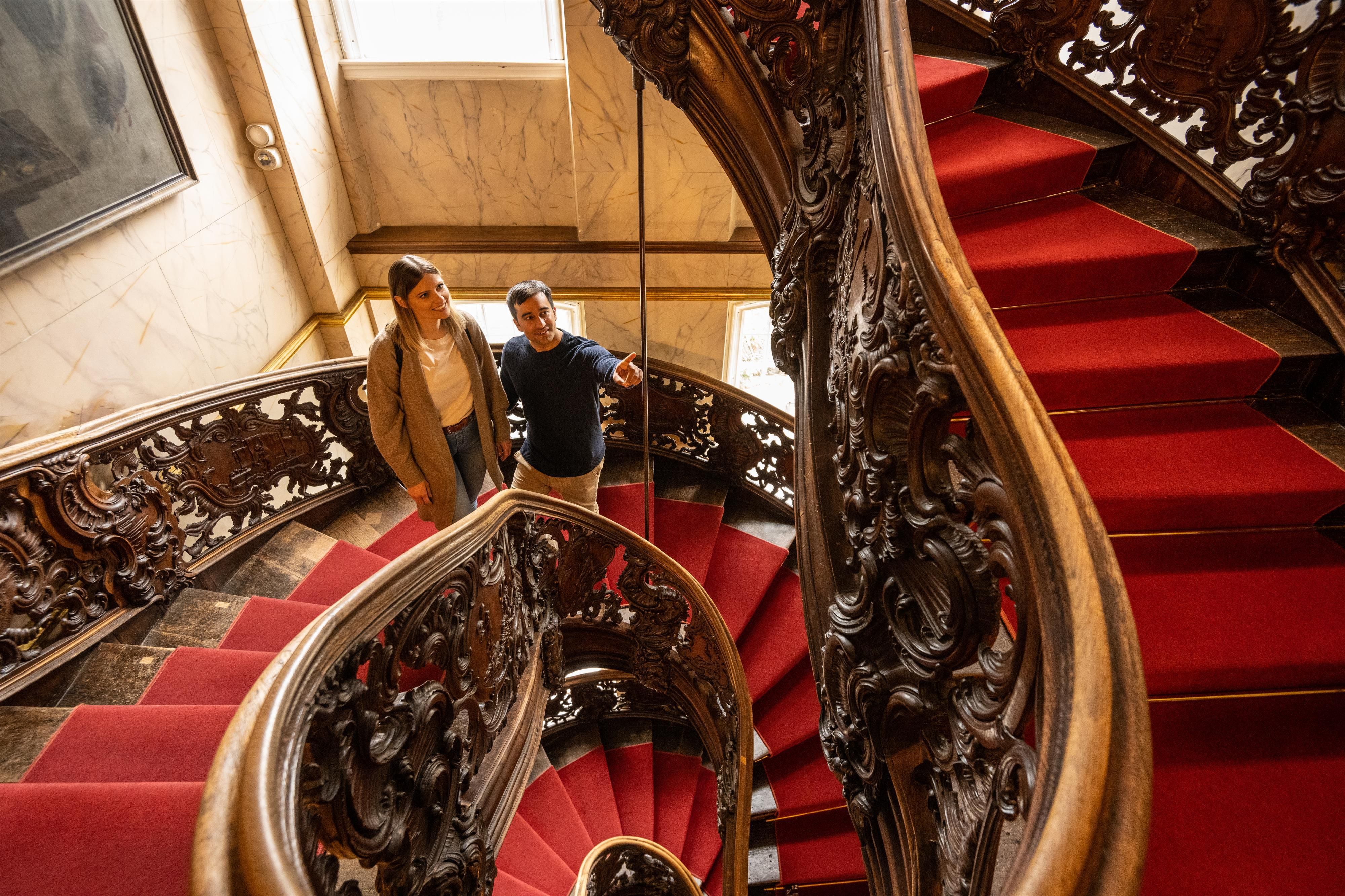 Gäste erwartet eine attraktive Kombination aus Einblicken in den Lebensstil und die Arbeitsvorgänge aus der Tuchmacherzeit – lebendig erzählt im Kontext der regionalen Geschichte. Ein Rundgang führt durch das Haus mit 13 vollständig eingerichteten Wohnräumen. Höhepunkte sind das Herrenzimmer mit seiner kostbaren Leinwandtapete oder die Küche mit ihren glänzenden Messing- und Kupferkesseln. Nicht zu vergessen, die weltberühmte Wendeltreppe aus Eichenholz, die sich über drei Etagen windet und an deren Geländer 21 kunstvoll geschnitzte Puttenszenen an die diversen Stationen der Tuchherstellung erinnern. Ein weiteres Highlight sind die Kontorräume, in denen Stoffmustertücher in den verschiedensten Dekors an die unglaubliche Vielfalt und Brillanz des Monschauer Tuchs erinnern.