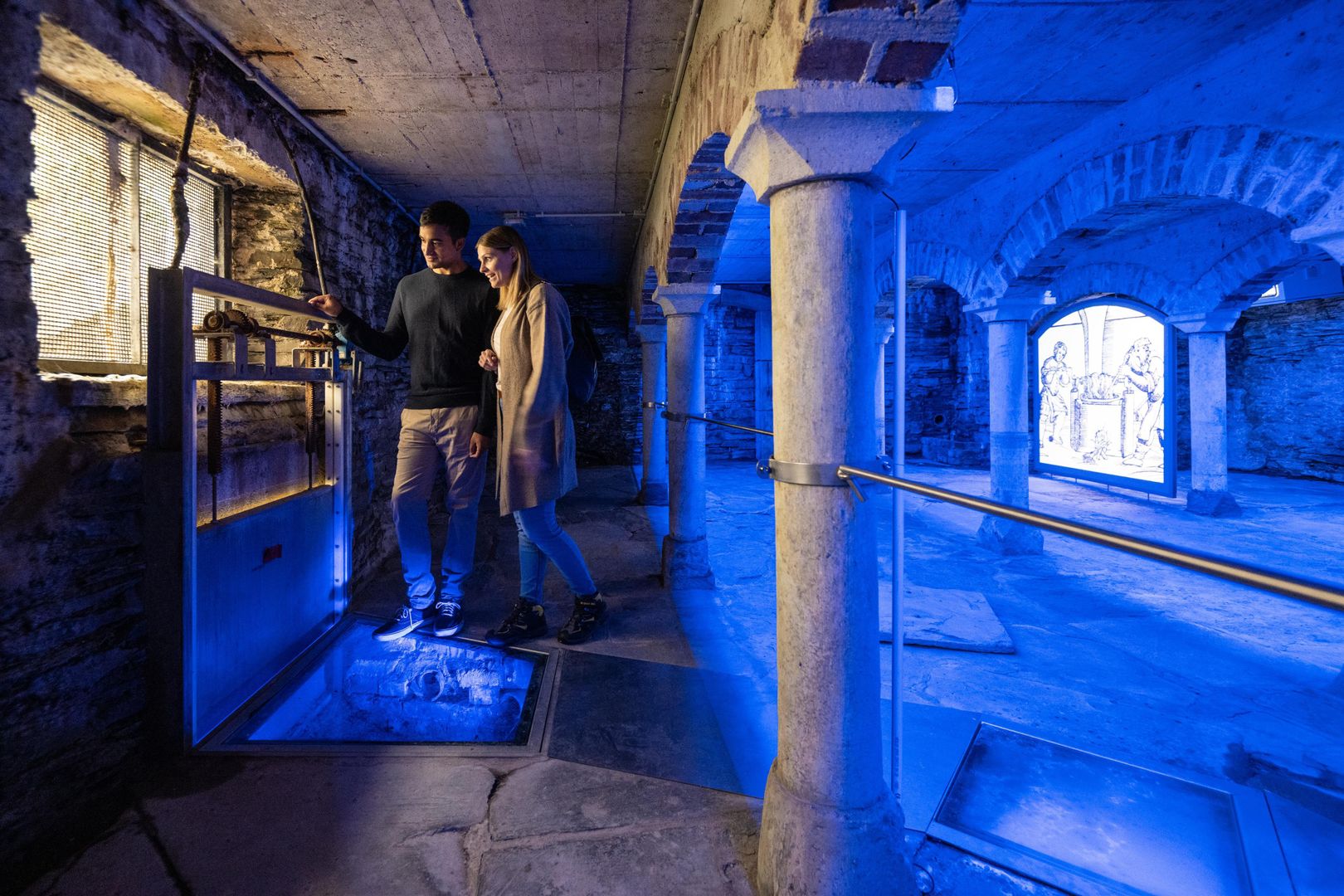 Ergänzt wird der Rundgang durch eine zusätzliche Ausstellung im Hausteil „Zum Pelikan“, von wo aus einst der Handel und die Produktion der begehrten Wolltuche geleitet wurde. In verschiedenen Themenräumen widmen sich moderne Präsentationselemente noch einmal mehr der aufwendigen Herstellung der Tuche sowie den wichtigen Handelsbeziehungen der Familie Scheibler.