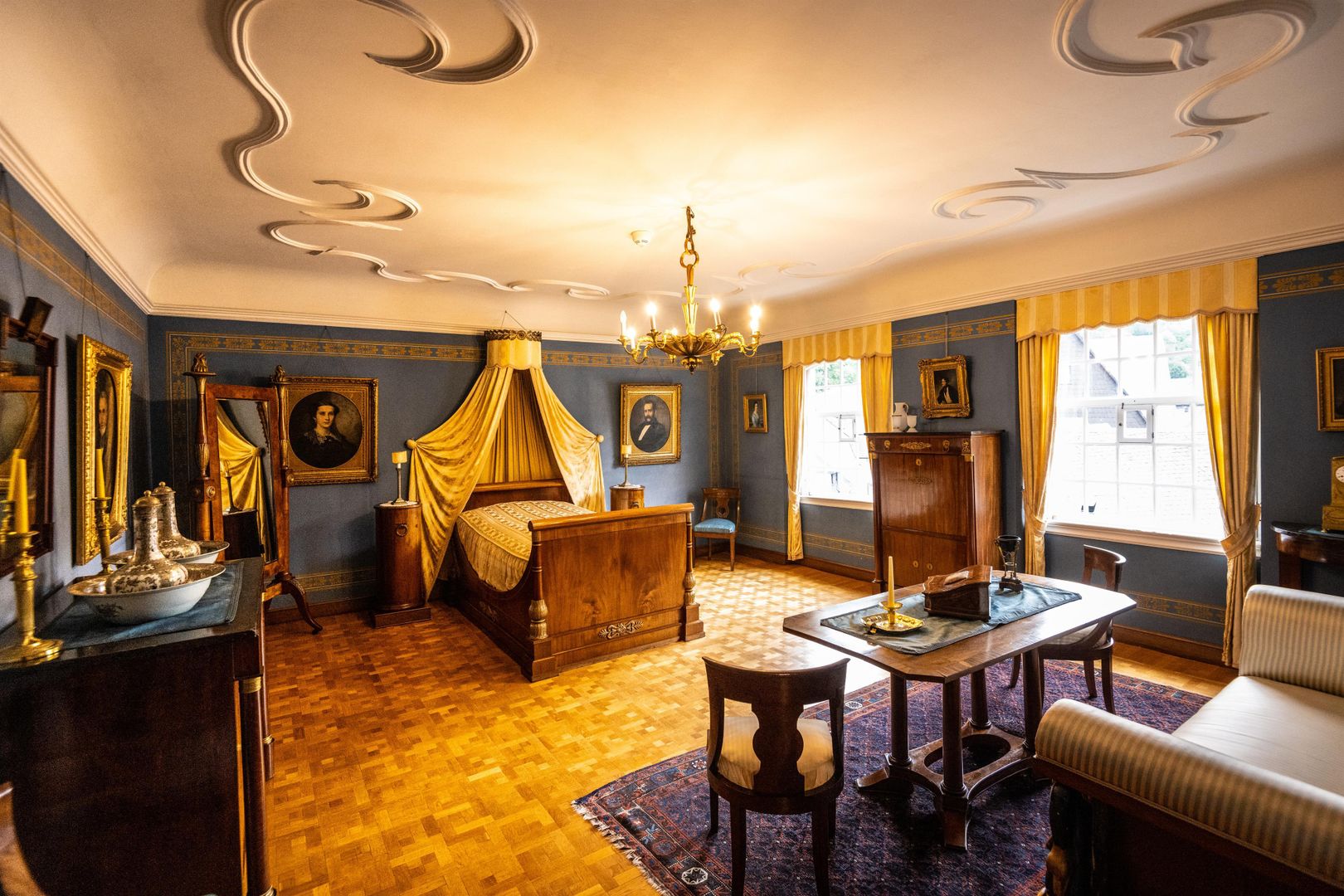 Fast allen Menschen in Monschau und darüber hinaus ist das Rote Haus ein Begriff, ist es doch eines der wichtigsten Wahrzeichen der Stadt und noch dazu ein echtes Schmuckkästchen, reich an Kostbarkeiten aus längst vergangenen Zeiten. Kaum ein anderes Gebäude spiegelt die Geschichte der einstigen Tuchmacherstadt besser wider als das Rote Haus. Ursprünglich wurde es im Jahr 1760 von Textilfabrikant Johann Heinrich Scheibler als Wohn- und Geschäftsgebäude erbaut. Die bis heute erhaltene Einrichtung mit seltenen Stücken aus Rokoko, Louis-seize und Empire präsentiert eindrucksvoll den Glanz der großbürgerlichen Wohnkultur von damals.