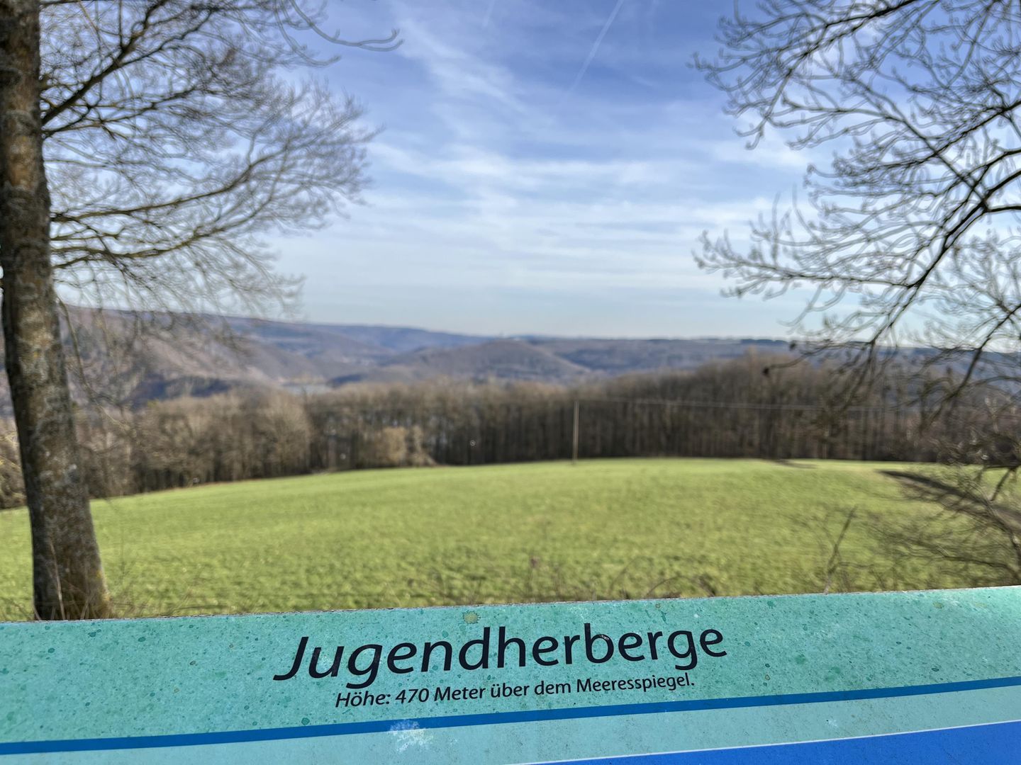 Auf einer Höhe von 470m liegt der Eifel-Blick bei der Jugendherberge Rurberg. Über den Rursee hinweg reicht der Blick bis hin zum Nationalpark Eifel. Das gesamte sichtbare Waldgebiet am Horizont gelegen, gehört zum Nationalpark Eifel, dem einzigen seiner Art in ganz Nordrhein-Westfalen. Links erstreckt sich der Blick über den Kermeter. Weiter rechts liegt die Dreiborner Hochfläche und es bietet sich ein wunderbarer Fernblick auf das Areal von Vogelsang IP. Gut erkennbar in der Ferne ist der hohe Turm der Anlage, der in den Himmel ragt. Ein toller Rastplatz, um anzuhalten und die Sicht zu genießen.