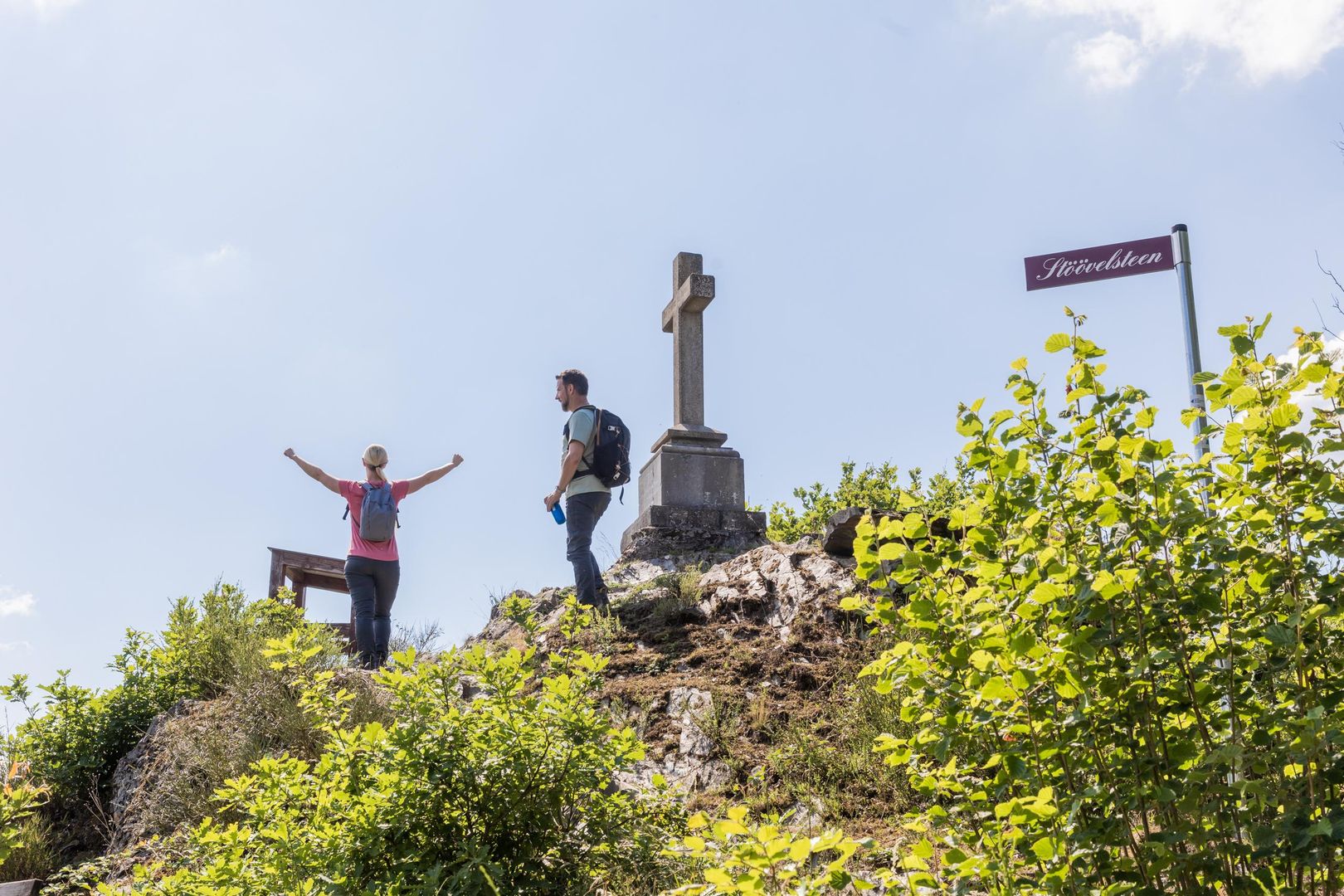 Seinen Namen erhielt der Aussichtspunkt "Schöne Aussicht" vom preußischen König Friedrich Wilhelm IV, der bei einem Besuch sehr beeindruckt vom Ausblick war. Der damalige Landrat Bernhard Freiherr von Scheibler, der den König auf diesem Ausflug begleitete, ließ daraufhin zur Erinnerung ein Steinkreuz aufstellen. Im Krieg wurde das Kreuz zerstört, jedoch danach wiederaufgebaut. Der Sockel stammt vom Original aus dem Jahr 1887.