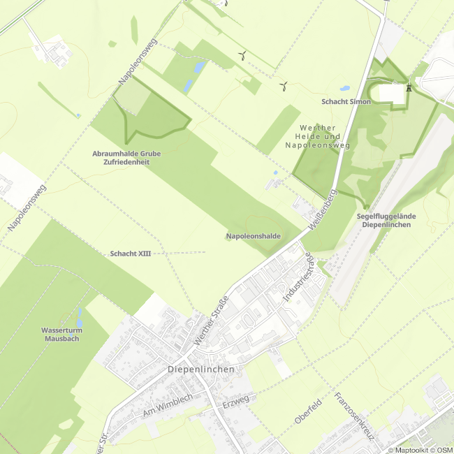 Die beiderseits des Weges liegenden Teiche dienten der Wasserversorgung der Erzaufbereitung der Grube Diepenlinchen. Im Rahmen der Aufbereitung des geförderten Erzes musste sowohl eine Trennung von Erz und tauben Gesteinsmitteln erreicht werden, als auch eine sorgfältige Trennung der Metallgruppen Blei, Eisen und Zink. Auf Diepenlinchen wurde hierbei das sogenannte „Nasstechnische Verfahren“ angewandt, das sehr wasserintensiv war. Da zu Beginn des Bergbaus nur wenig qualitative Aufbereitung möglich war, enthielt das Haldenmaterial noch genug Erz, um zusätzlich zur Tagesförderung eine erneute Aufbereitung des Haldenkörpers rentabel zu machen. Zwischen 1906 und 1907 wurde deshalb die neue Aufbereitung errichtet und in Betrieb genommen. Zum Waschen der Berge bediente man sich des gehobenen Grubenwassers, das eigentlich nur bis Höhe des Wasserlösungsstollens (Binsfeldhammer-Stollen) angehoben werden musste, um über diesen mittels eines 2.400 m langen Stollens in die Vicht entwässert zu werden. Im Mittel wurden 9.000 l pro Minute gehoben. Rund 2.000 l pro Minute wurden allerdings weitere 90 m bis zur Tagesoberfläche gehoben, um für die Erzwäsche verwendet zu werden. Da die Aufbereitungsanlage jedoch die doppelte Wassermenge benötigte, aber nur 10 Stunden am Tag in Betrieb war, wurden diese beiden Teiche angelegt, um außerhalb der Betriebszeiten die fehlenden Wassermengen zu sammeln. Die Erzwäsche konnte täglich 257 t Haufwerk aus den alten Halden umsetzen.
