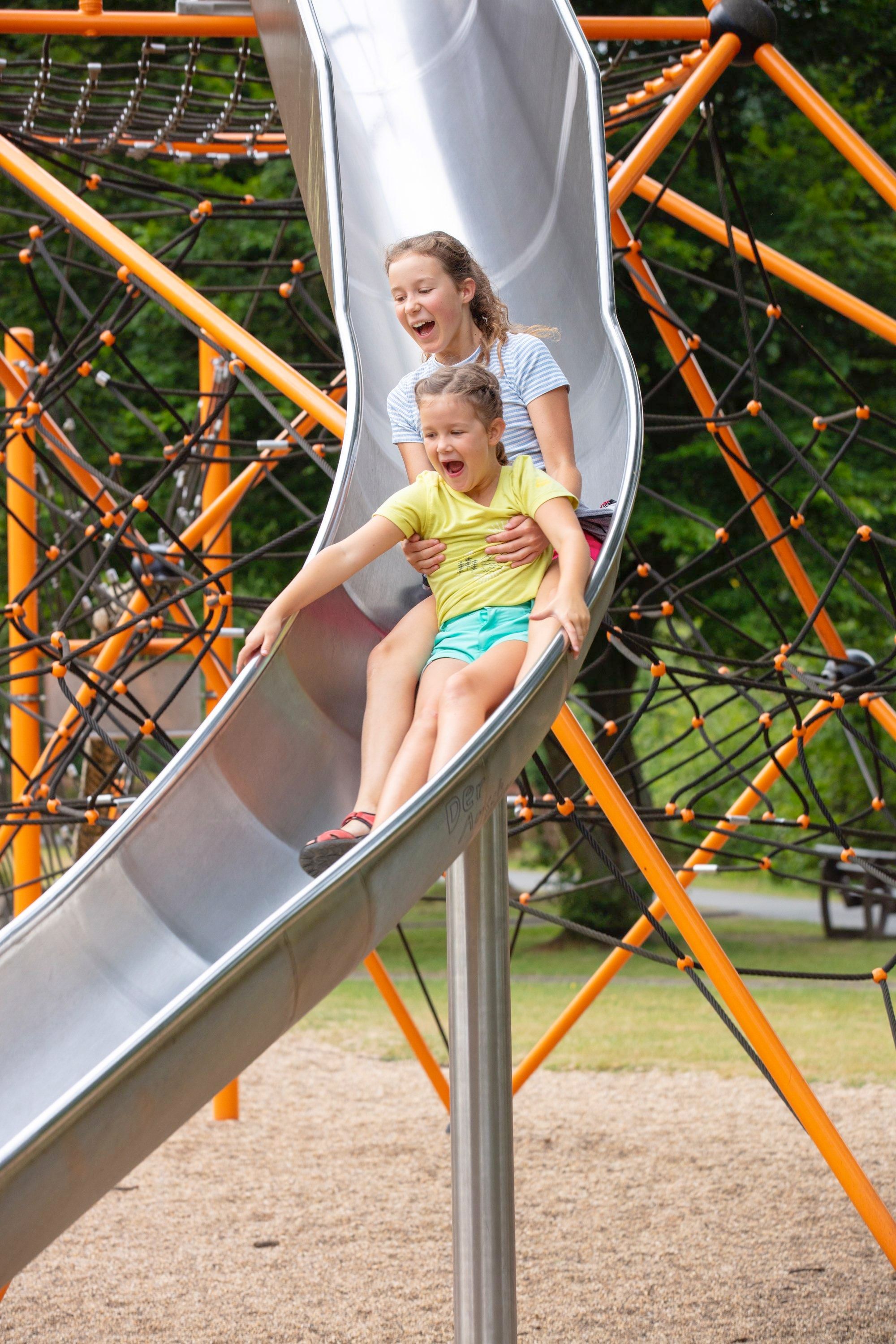 Kletterspaß PUR! Die große Kletterpyramide ist das Highlight auf dem Spielplatz am Seeufer in Simmerath-Einruhr. Jeder kleine und große Kletteraffe kann sich hier austoben.