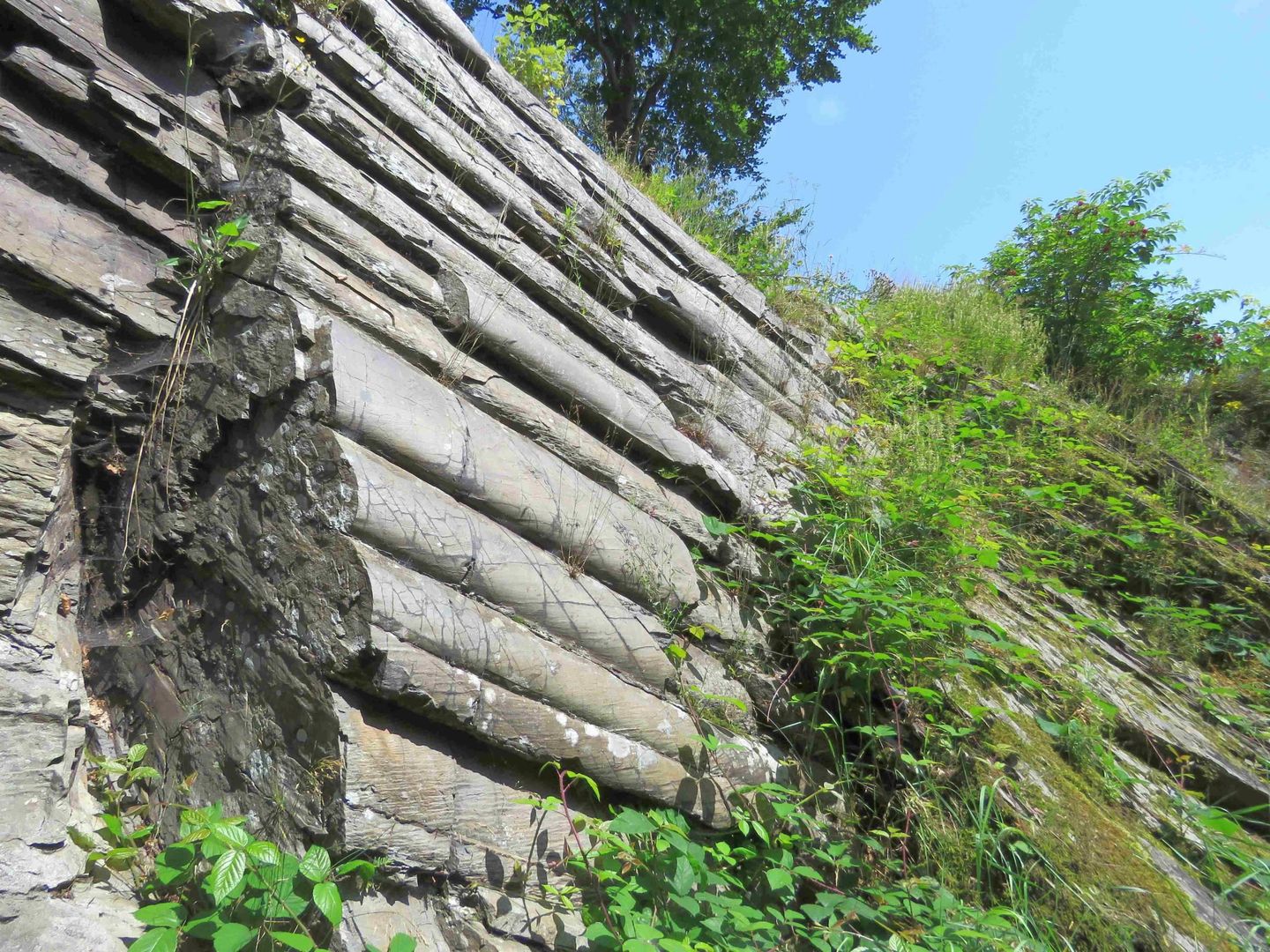 Wer sich aus östlicher Richtung der Ortschaft Dedenborn in der Gemeinde Simmerath nähert, erkennt sofort, dass dieser Ort etwas ganz Besonderes ist. Kühn erstreckt sich der Felsgrat oberhalb der Rur. Im Jahre 1952 machte der Landesgeologe Dr. Wolfgang Schmidt vom Geologischen Landesamt Nordrhein-Westfalen in Krefeld, bei geologischen Kartierungsarbeiten des Messtischblattes Schleiden eine erstaunliche Entdeckung. Zufällig fand er einen Felsen, der eine sogenannte Mullion-Struktur in den Schiefern der Rurberger Schichten, am Süd-West-Ausgang des Dorfes Dedenborn aufwies. Dabei handelte es sich um eine einzigartige tektonische Struktur, die in dieser Ausprägung im ganzen Rheinischen Schiefergebirge sonst nicht mehr angetroffen wird. Sie besteht aus der Zerlegung einer Grauwacken-Bank in parallele Wülste, die auf einer steilstehenden Fels-Wand übereinanderliegen. In Deutschland ist diese Struktur bisher noch nie beschrieben worden. Sie wurde erstmals in England entdeckt und ist dort unter der Bezeichnung "Mullion-Struktur" ins Schrifttum übergegangen (mullion = Bündel von Pfeilern an gotischen Kirchenfenstern). Es handelt sich mithin um ein für Deutschland einmaliges Denkmal einer tektonisch (=durch Gebirgsdruck hervorgerufenen) Verformung einer Grauwacken-Bank.