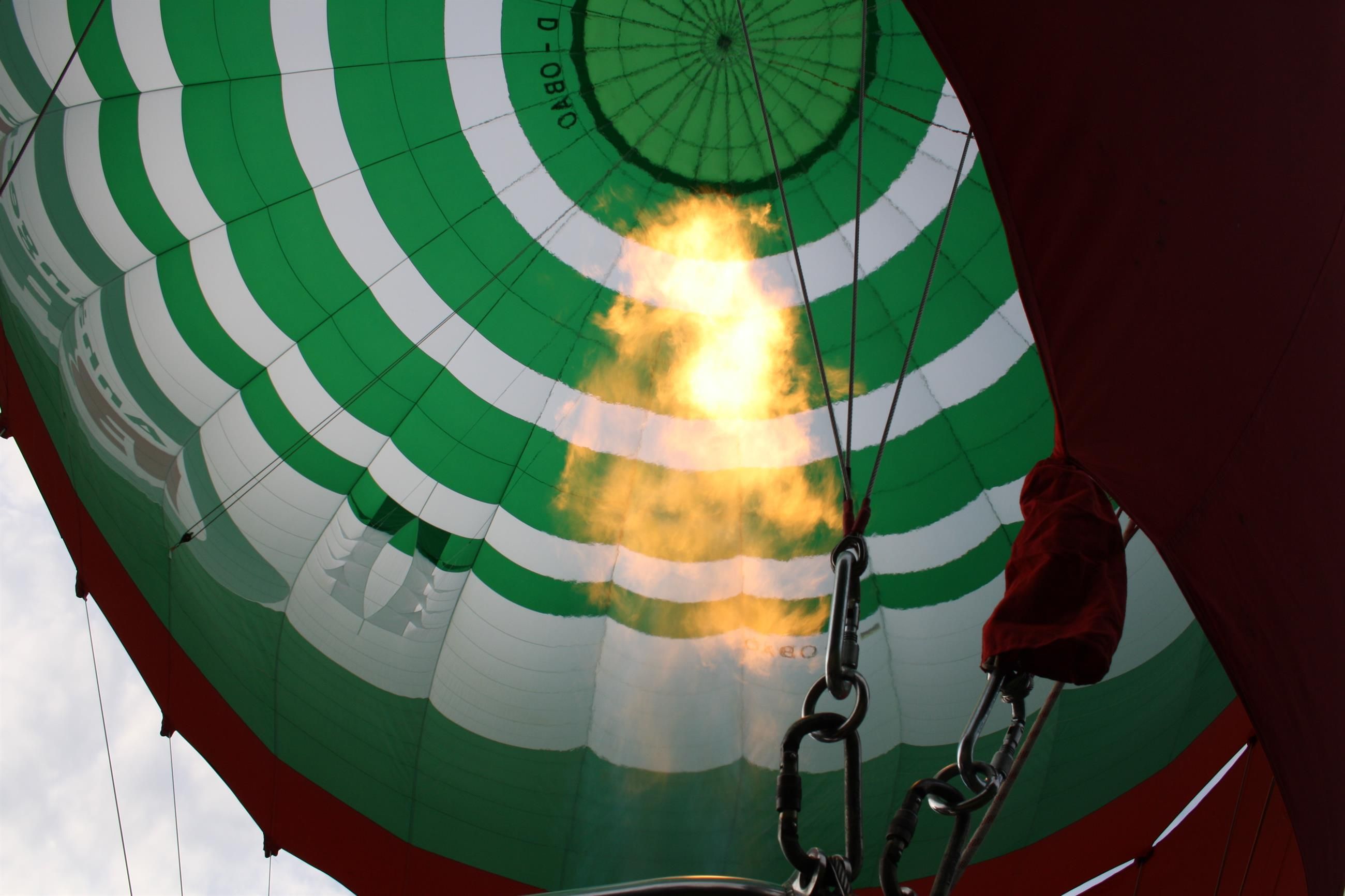 Wir sind etwa 60 bis 90 Minuten in der Luft, das gesamte Event dauert jedoch vier bis fünf Stunden und schließt eine Vielzahl von Aspekten mit ein – der gemeinsame Auf- und Abbau des Ballons, das Prüfen der Wettervoraussetzungen bis zum Ritual der Ballonfahrertaufe.