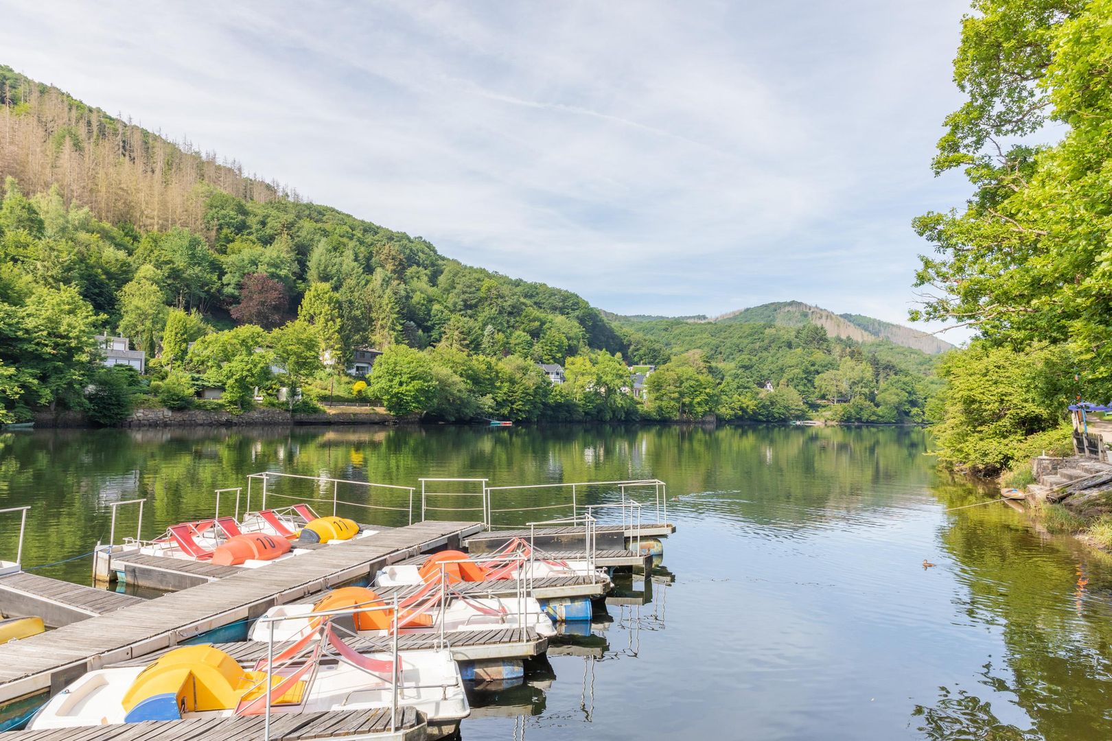 Das Staubecken Heimbach, am Rande des Nationalparks Eifel, lädt Naturliebhaber und Ruhesuchende in eine malerische Landschaft ein. Umgeben von den bewaldeten Hängen des Meuchelbergs und des Kermeters, bietet das klare Wasser die perfekte Kulisse für entspannte Tretboot- und Kanutouren.