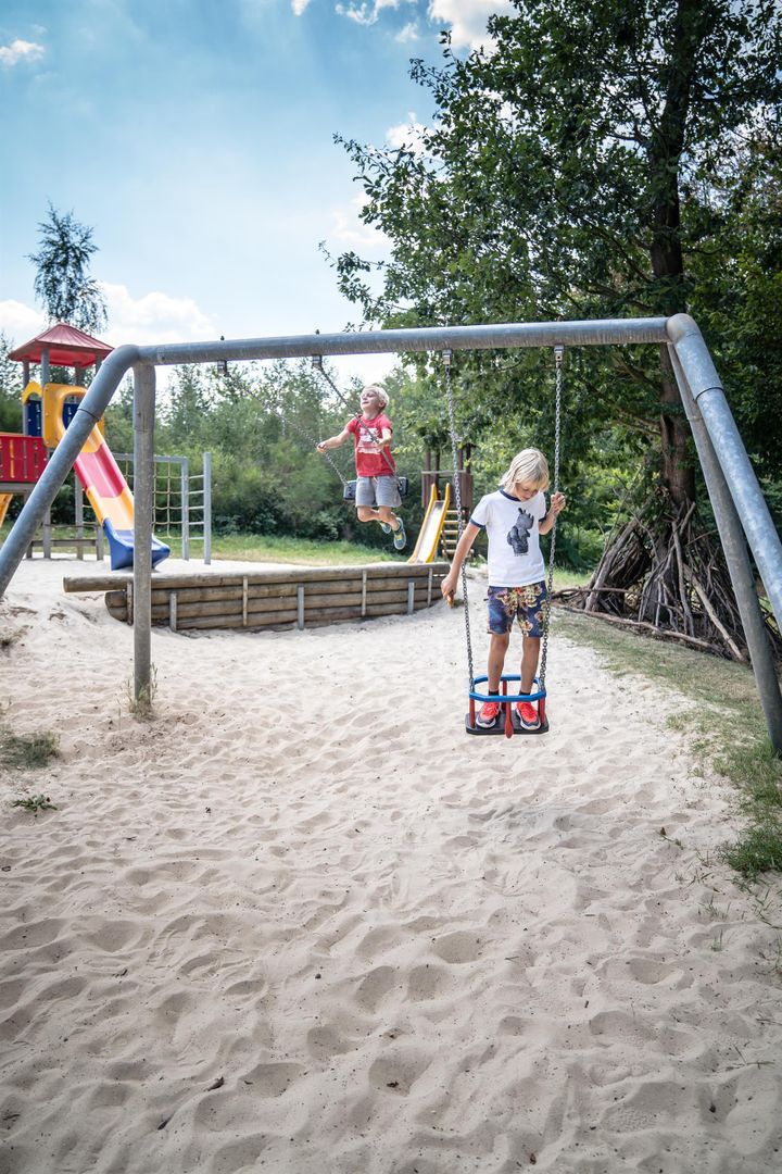Schön gelegener Spielplatz in direkter Nähe zum Staubecken. Eine Schutzhütte mit Tisch und Bänken bietet eine perfekte Pausenmöglichkeit, bei der die Kinder sich auf den Spielgeräten austoben können.
