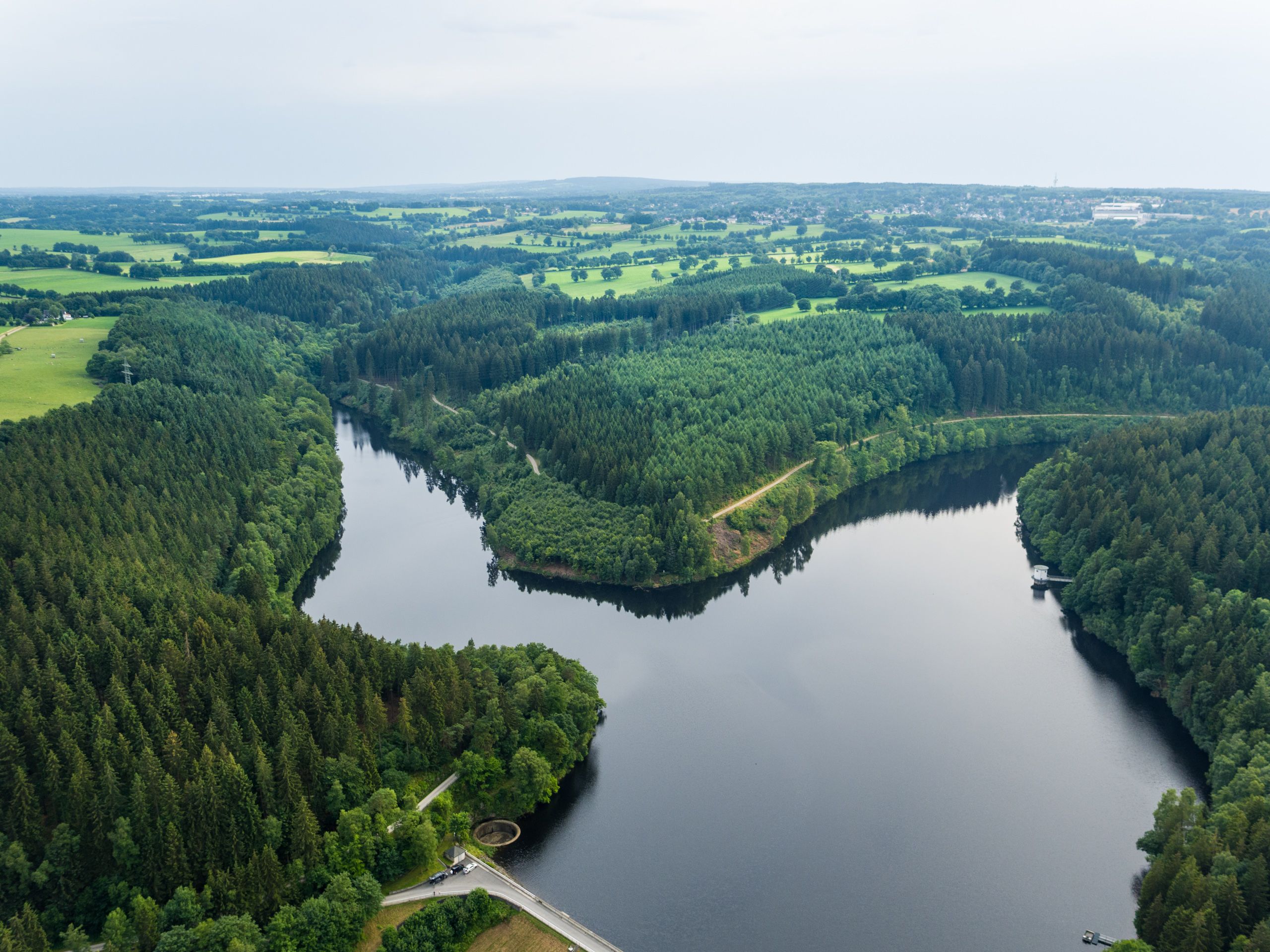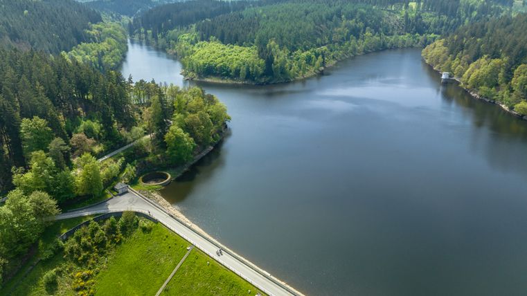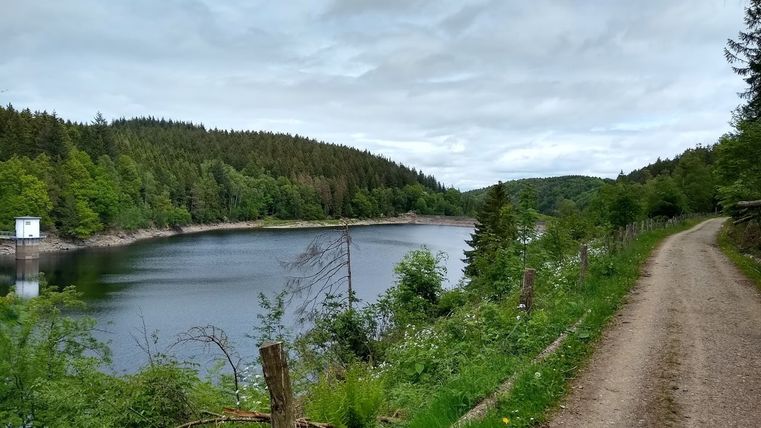 Die Strecke knickt nach Süden ab und wir verlassen die Waldgebiete rund um die Talsperre, um in die Feld- und Wiesenlandschaft östlich von Lammersdorf einzutauchen. Über einen weiten Bogen führt die Strecke schließlich zurück zum Ausgangspunkt nach Lammersdorf.