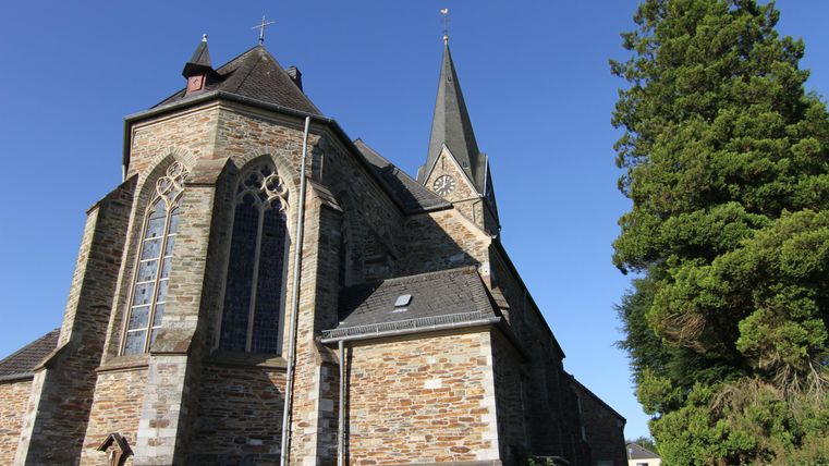 Die Tour startet an der Kirche St. Johann Baptist in Lammersdorf, die 1902 in neugotischem Stil errichtet wurde und noch heute fasziniert durch farbenfrohe Ausmalung, prächtige Holzaltäre und schwarze Marmorsäulen. Dabei handelt es sich um eine der wenigen Kirchen, die die Schlacht um Hürtgenwald 1944/45 nahezu unbeschadet überstanden haben.