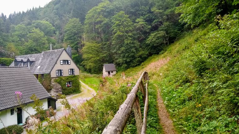 Die idyllischen Bachtäler um Eicherscheid laden zum Verweilen ein. Durch den Ortskern führt die Wanderung an der Kirche St. Lucia vorbei. Außerhalb des Ortes schlängelt sich der Weg in das Drosselbachtal. Nach Verlassen des Baches zeigt sich am linken Wegesrand das Alsdorfer Bergmannskreuz. Entlang des Belgenbaches stößt man auf die gleichnamige Mühle. Der anschließende Holzbach begleitet den Weg zurück in den Ort.