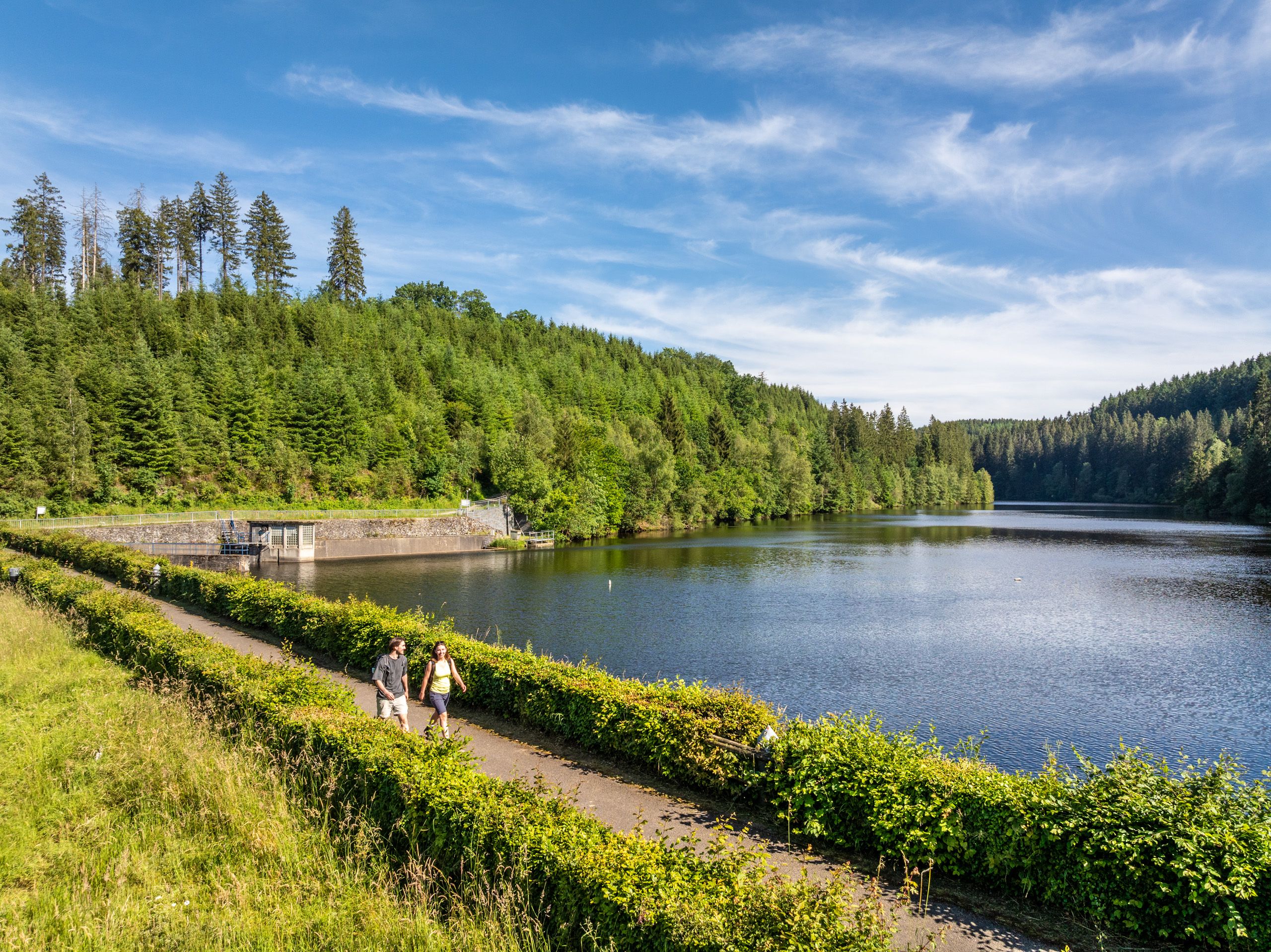 Dieser Rundweg führt dich durch Höfen, das Dorf der berühmten Buchenhecken. Zwischen den grünen Wänden öffnen sich immer wieder weite Blicke über das Monschauer Land. Der Weg verläuft entlang der verlassenen Perlenbacher Mühle und der Perlenbachtalsperre – Orte, an denen Geschichte und Natur ineinander übergehen.