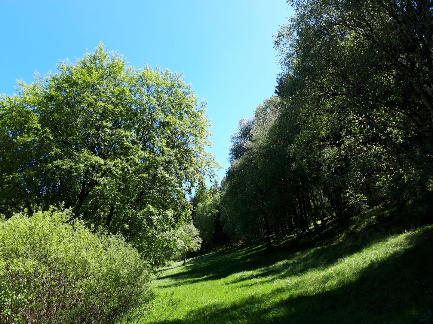 Nachdem du den „Unteren Steg“ überquert hast, siehst du auf der rechten Seite den nächsten Picknickplatz direkt am Bach. Wenn du weiter auf dem Weg 73 bleiben möchtest, halte dich links und folge den Bachauen. Der Weg wird dann etwas schmaler, bis du an die Wegekreuzung zum „Holländerhäuschen“ kommst.