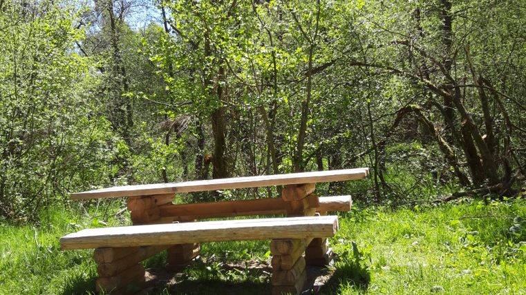 Für die Erwachsenen gibt es eine Schutzhütte mit einem super Blick auf die Kräuter und Wildblumen in den Bachauen – perfekt zum Entspannen!