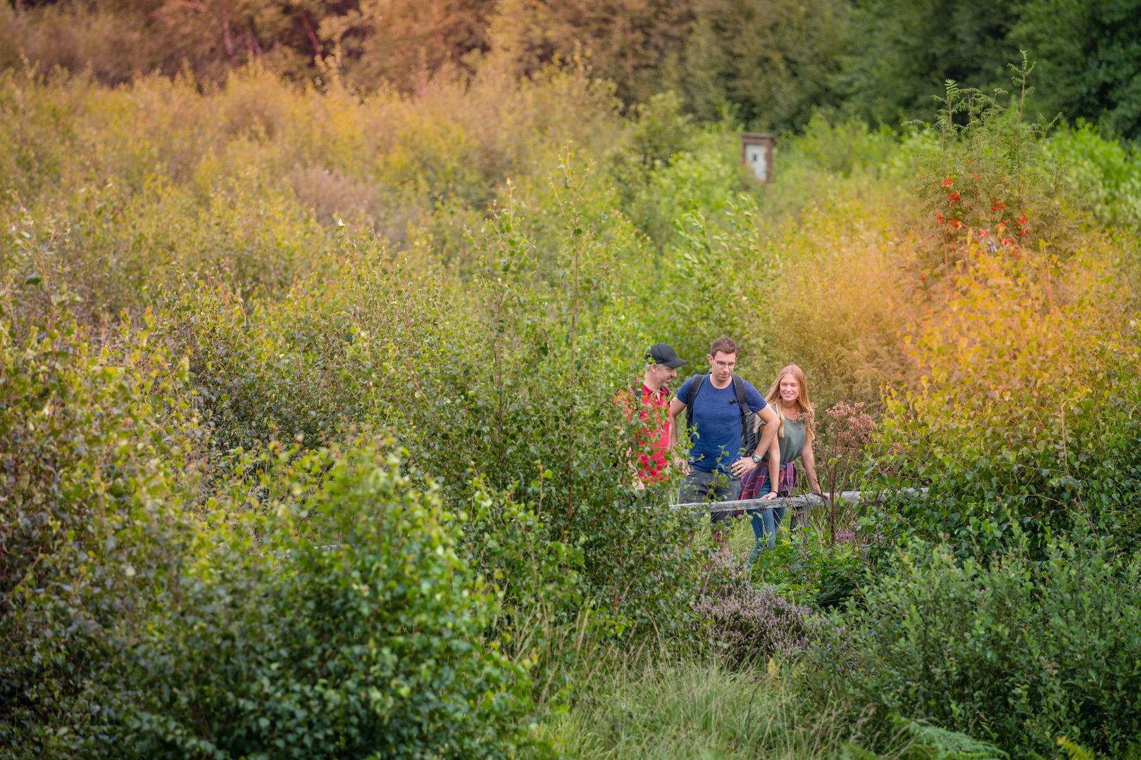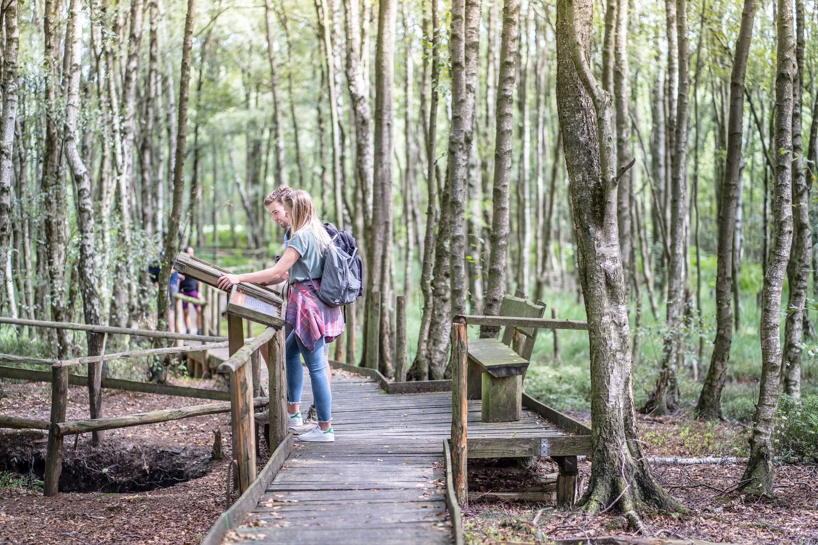Der 4,5 Km lange Bodenlehrpfad führt unter anderem auf einem 700 Meter langen Bohlensteg direkt über die sensiblen Böden sowie durch den Quellbereich der Weißen Wehe.