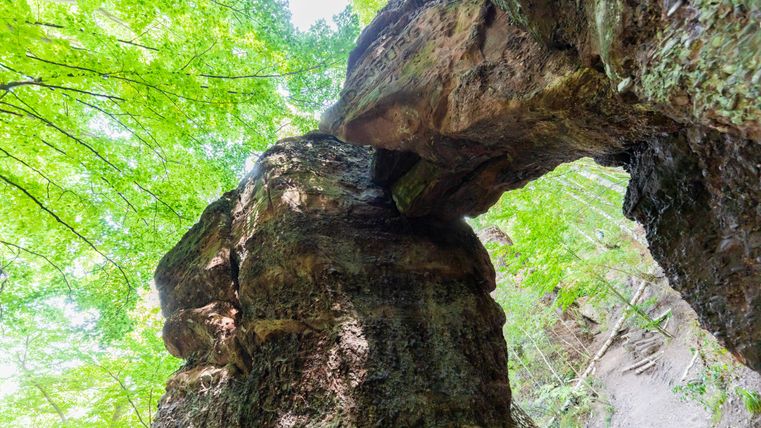Die Buntsandsteinfelsen bergen eine natürliche Felssturzgefahr. Bitte halten sie Abstand von den Absturzkanten und halten sie sich nicht unterhalb der Felswände auf. Beachten Sie Warnschilder und Anweisungen, um Unfälle zu vermeiden und die Natur zu schützen.