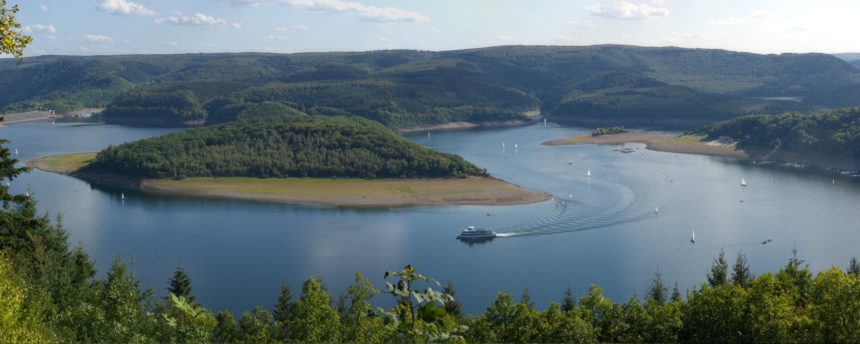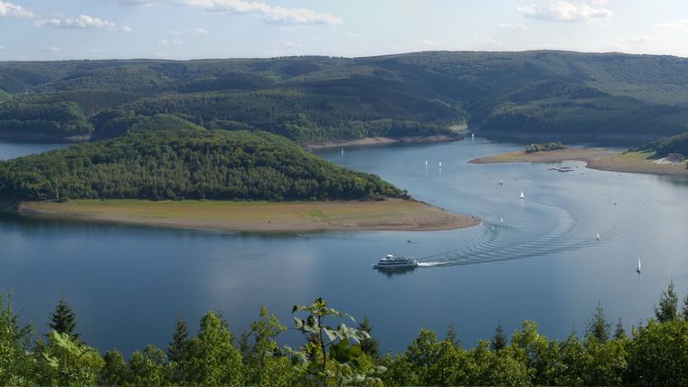 Majestätische Buchen, atemberaubende Ausblicke auf drei Stauseen und der raue Charme bizarrer Felsformationen: Die 230 Kilometer lange Eifel-Höhen-Route ist eine abwechslungsreiche und sportlich anspruchsvolle Rundtour durch und rund um den Nationalpark Eifel. Beim Radwandern auf den Höhen offenbaren sich atemberaubende Panoramablicke und entlang der Oleftalsperre und der Eifeler Seenplatte entdeckt man den besonderen Reiz des Wasserlandes. Auf der Urftseeroute führt die Fahrradtour dann ins Herz des Nationalparks Eifel.
