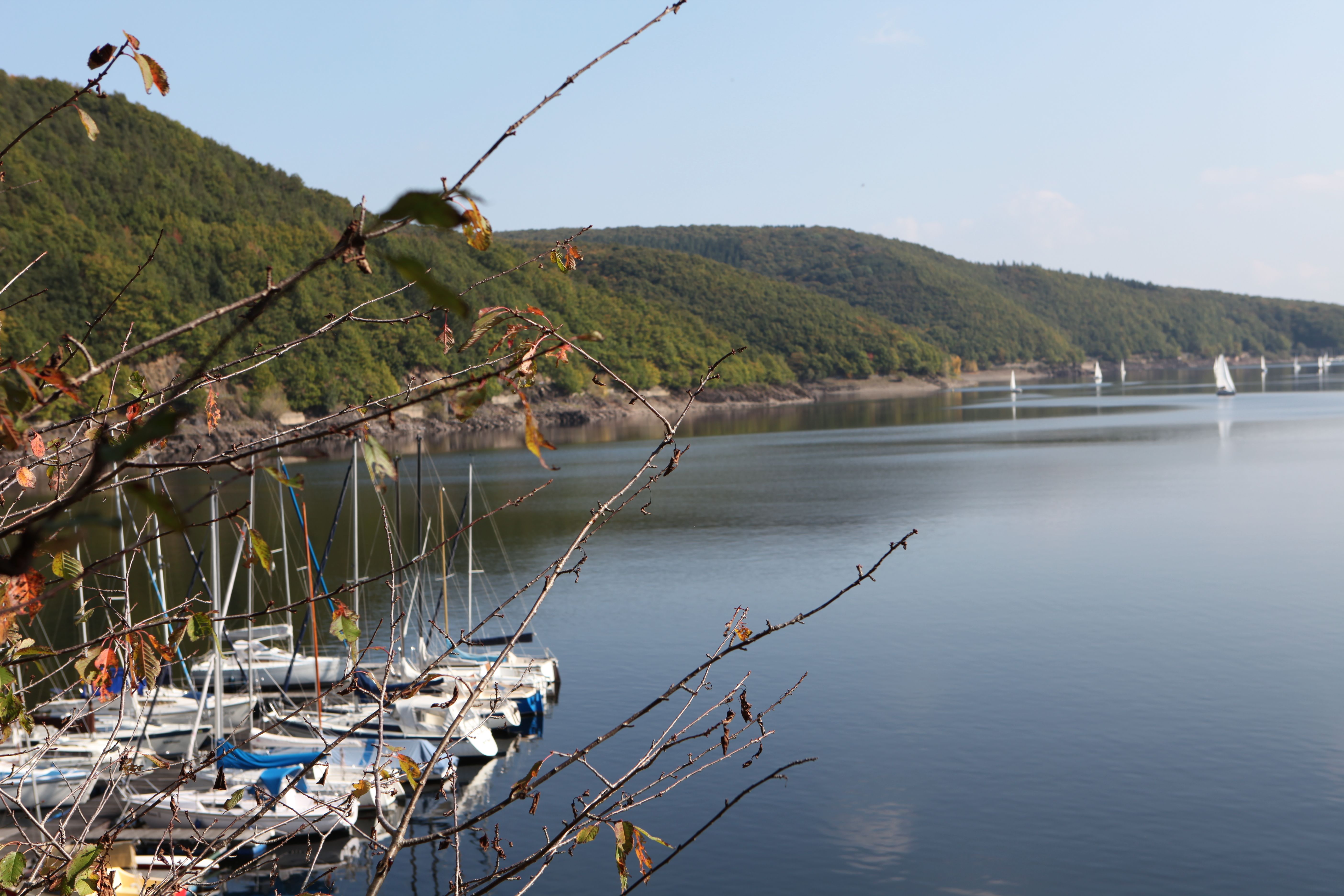 Der 14,1 km lange Rundwanderweg führt dich in gut vier Stunden entlang des Rurseeufers, durch das Örtchen Schmidt und zurück durch den Nationalpark Eifel. Dabei hast du einen sagenhaften Blick auf die Rurtalsperre Schwammenauel. Am Stausee liegt ein Wasserkraftwerk, welches zu Stromerzeugung genutzt wird. Das Kraftwerk leistet eine Jahresarbeit von fast 25 Mio. Kilowattstunden. Der See hat eine Fläche von 780 Hektar und gehört mit seinem Fassungsvermögen von 203 Mio. m3 zu den größten Stauseen Deutschlands. Erwischst du bei deiner Wanderung eine Niedrigwasserphase des Stausees, kannst du den schroffen Schieferabhang sehen, der dem Rundwanderweg auch seinen Namen „Steilküste“ gibt.