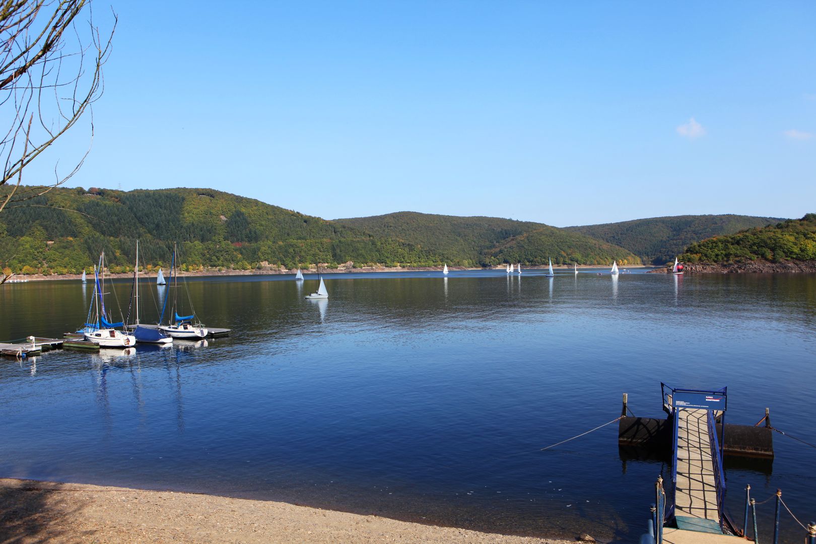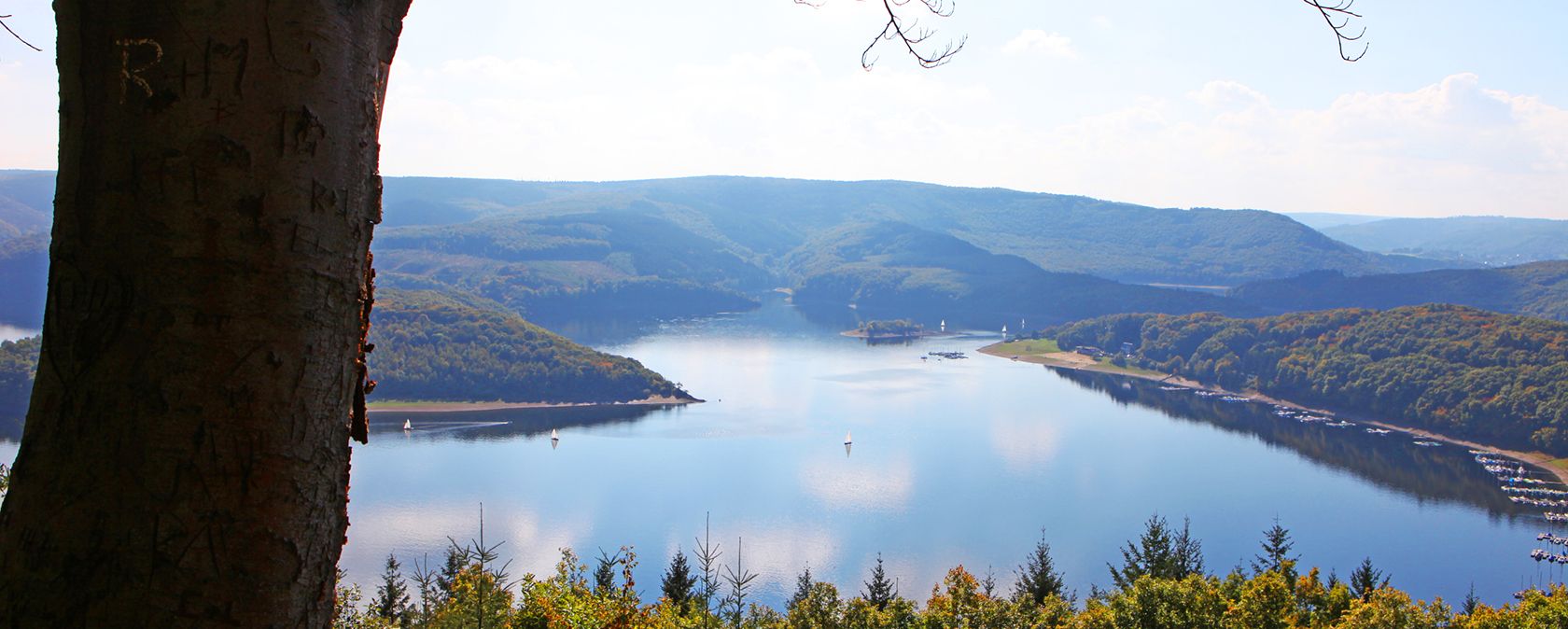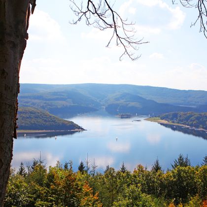 Der Weg führt entlang des Rurseeufers, dann hoch nach Schmidt und zurück durch den Nationalpark-Eifel mit Blick auf den Stausee „Schwammenauel“.