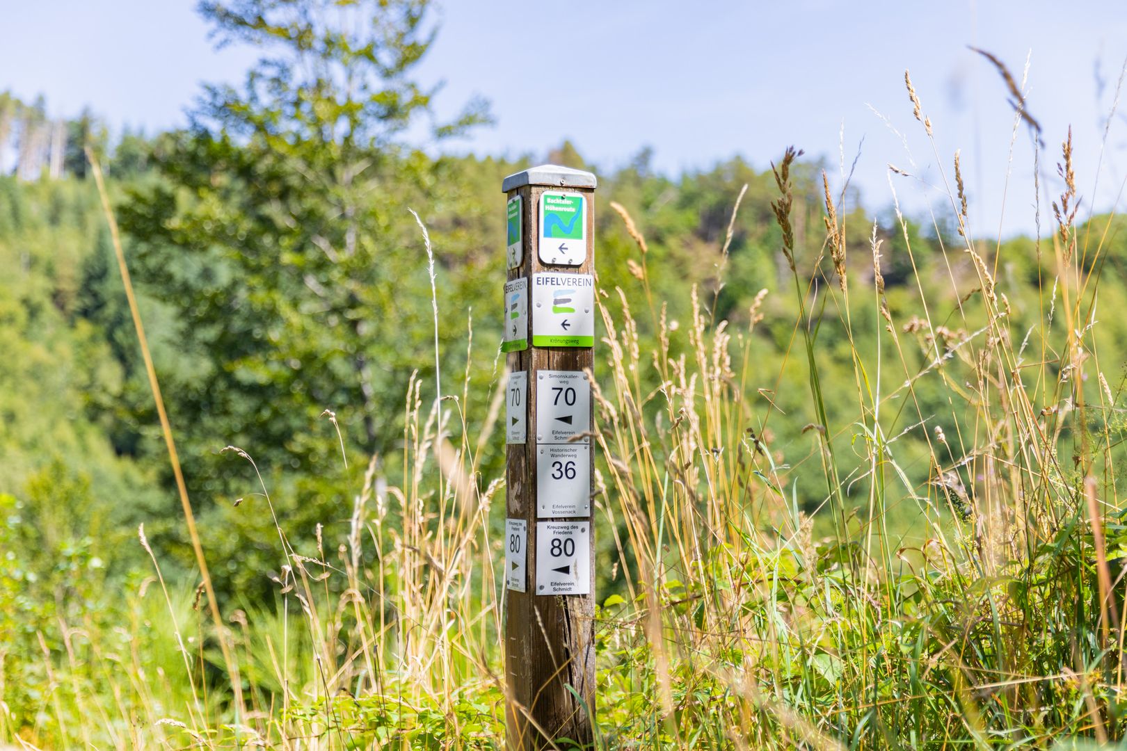 Diesen 15,3 Kilometer langen Wanderrundweg beginnt ihr auf dem Baptist-Palm-Platz an der Kirche in Vossenack und folgt dem Wegezeichen mit der Nummer [36]. Auf eurer Route taucht ihr ein in die ruhigen Täler des Morlesiefs und des Richelsbachs, bis ihr den breiten Kalltalweg erreicht, der zur Mestrenger Mühle führt – einem wahren Zeugnis der Industriegeschichte. Bereits ab 1663 als Kornmühle in Betrieb, bediente sie die umliegenden Ortschaften mit Mehl. Wenn ihr die Kall, einen Zufluss der Rur, überquert, führt euch der Weg ins Huschelbachtal zum Schaumeiler. Dort bekommt ihr einen Einblick in die mühsamen Arbeiten einer längst vergangenen Zeit. Hier wurde aus Buchenholz der begehrte Energieträger Holzkohle hergestellt. Es wurden 3,2 Tonnen Holzkohle benötigt, um 1 Tonne Roheisen zu erzeugen. Auf dem Weg zurück ins dicht bewaldete Kalltal kommt ihr am alten Wasserwerk von 1905 vorbei – einer technischen Meisterleistung. Ausschließlich der Gefälledruck des Triebwassers förderte das Trinkwasser 200 Meter hoch nach Vossenack (bis 1936) und Schmidt (bis 1972).