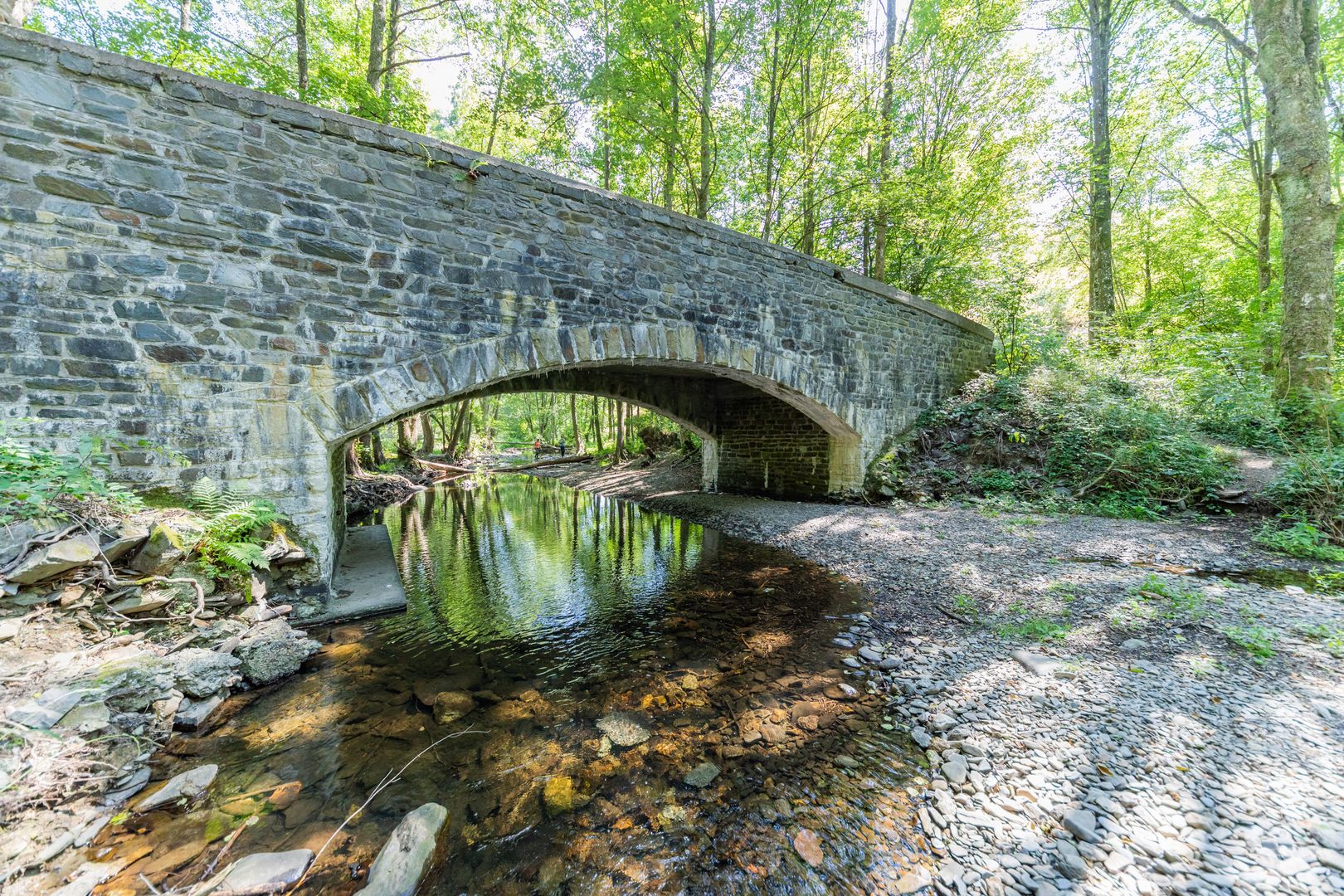 Folgt ihr weiter dem Rundgang, kommt ihr an 400 Millionen Jahre alten Felsformationen mit besonderer Faltenstruktur vorbei, die in der Eifel einzigartig ist. Auf dem Rückweg überquert ihr die Kallbrücke, auf der eine von Pater Laurentius geschaffene Statue des heiligen Nepomuk steht, und wandert weiter zurück und an der Kornmühle vorbei, bis ihr den idyllisch gelegenen Ort Simonskall mit seinen historischen Gebäuden erreicht, dessen erste Besiedlung bereits 1608 erwähnt wird. Dort wandert ihr weiter, vorbei an der 1643 erbauten Burg und der 1934/35 erbauten Marienkapelle, bis ihr am Junkerhaus aus dem Jahr 1610 vorbeikommt, das als „Haus des Gastes“ genutzt wird, wo oft interessante Ausstellungen stattfinden und viele geschichtsträchtige Einzelheiten zum Kalltal zu finden sind.