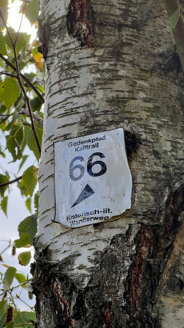 Wanderung von Vossenack durch das Kalltal bis nach Schmidt-Kommerscheidt. Sie folgen der Nummer 66.