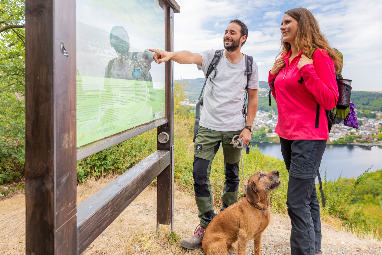 Weiter geht es durch Eichenhaine bis zu einer Kreuzung, an der ihr die Felspassage [07] verlasst und scharf rechts Richtung Rurterrassen abbiegt. Auf dem letzten Stück gelangt ihr auf einen Waldlehrpfad, der euch über heimische Bäume und Sträucher informiert. Der Pfad mündet schließlich in den Waldspielplatz, dem Schluss-Highlight für die Kleinen. Nach ausgiebigem Toben könnt ihr euch dann auf der Sonnenterrasse des „Café Flink“, bei „Strepp am See“, im „Hotel am See“ oder im „Kiosk Obermaubach“bei Kaffee und Kuchen entspannen und dem leisen Plätschern der Fischtreppe lauschen.