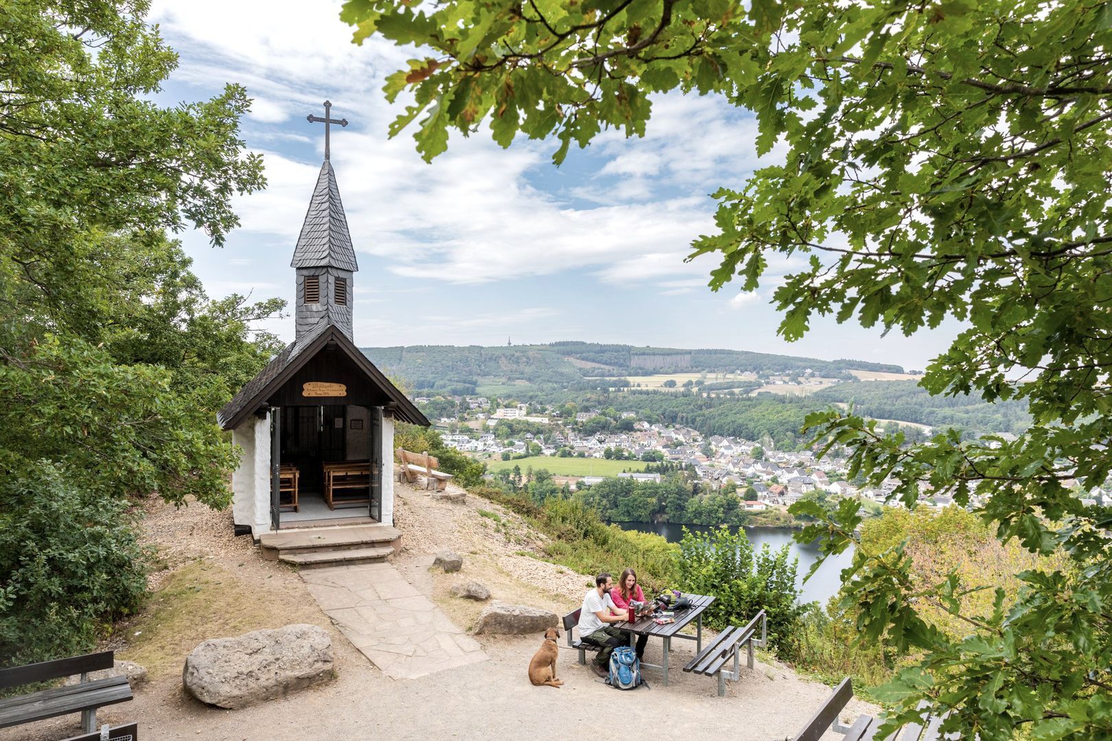 Start der Rundtour ist der Parkplatz gegenüber dem „Café Flink“ in Obermaubach. Die Strecke ist mit dem Wegezeichen [07] markiert. Auf Waldwegen geht es erst mal in gemächlichen Serpentinen hinauf auf die Mausauel. Von der Waldkapelle oben erlebt ihr wunderbare Eifel-Blicke auf den Stausee, die letzten Anhöhen der Nordeifel und den Übergang in die Jülich-Zülpicher Börde.