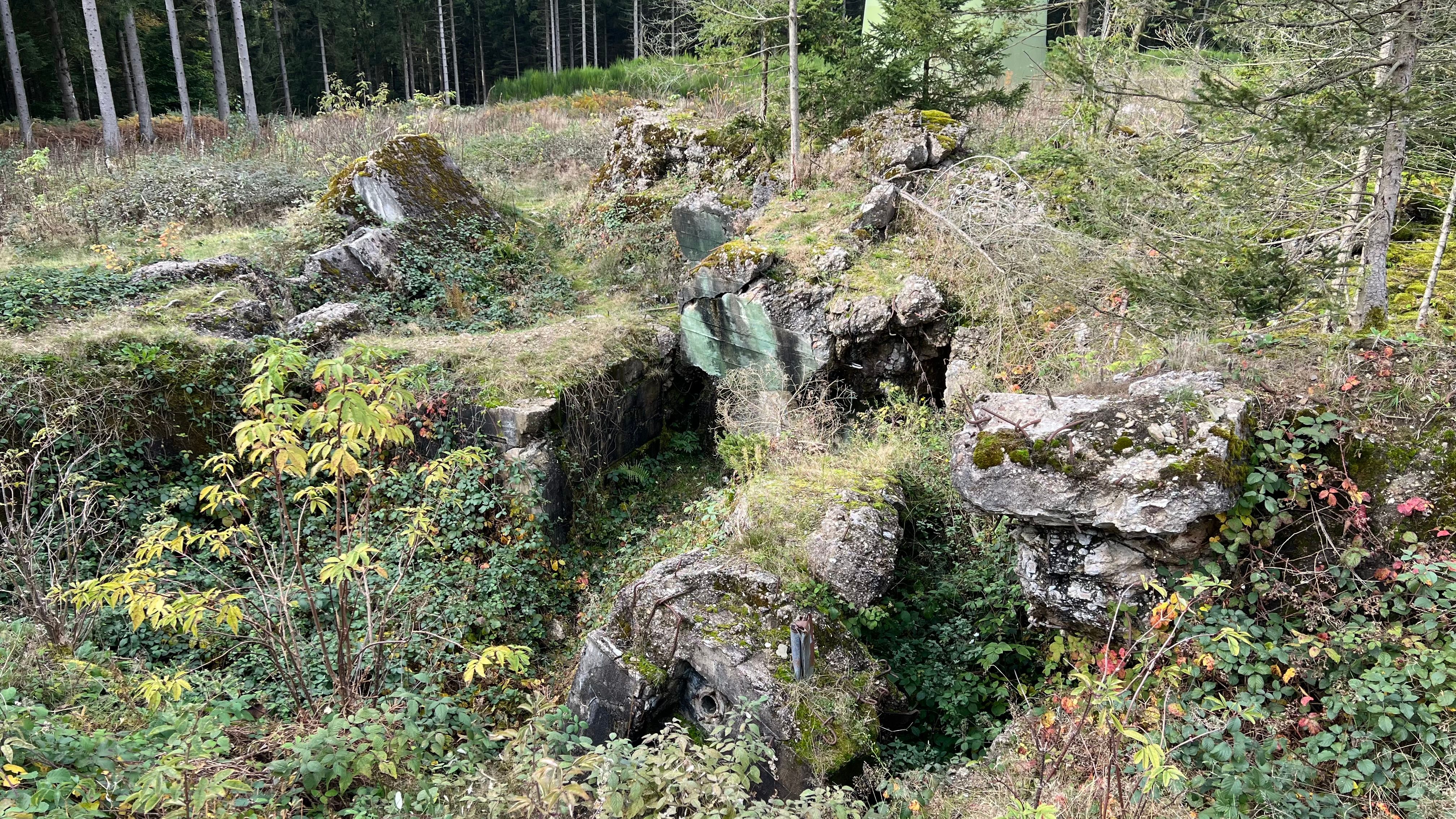 Sie starten diese Wanderung am Parkplatz Ochsenkopf bei Raffelsbrand. Bereits kurz nach Beginn der Wanderung können Sie alte Stellungen und Deckungslöcher des Zweiten Weltkriegs entdecken. Auch im weiteren Verlauf begleiten Sie am Wegrand Bunkerruinen, sowie Gedenkstellen für die Gefallenen.