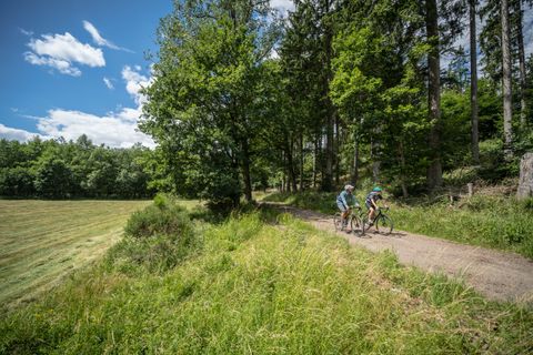 Mit dem Fahrrad rund um den Rursee. Länge: 26 km