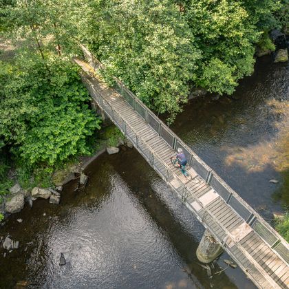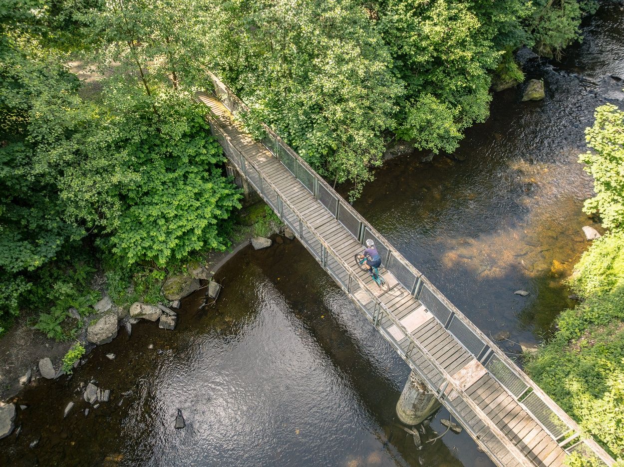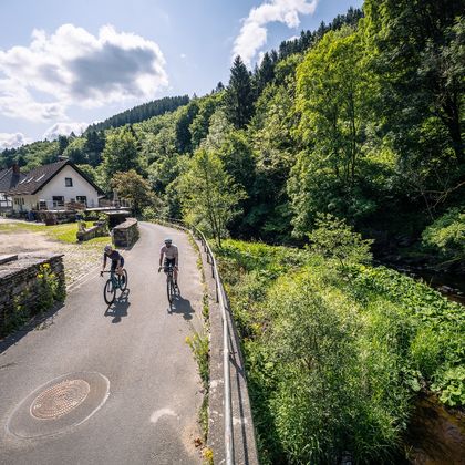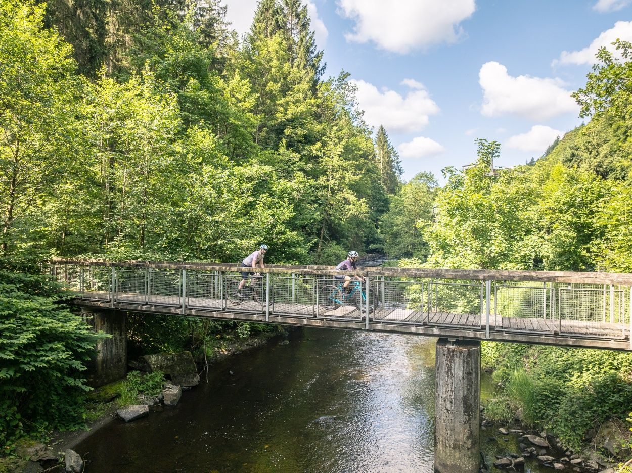 Ein Highlight: der Abschnitt auf der Vennbahn mit historischem Flair. Gönn Dir den Blick auf die Burg Monschau – am besten vom Eifelblick aus – und eine Pause an der Köhlerklause mit ihrem historischen Sägewerk am Kluckbach.