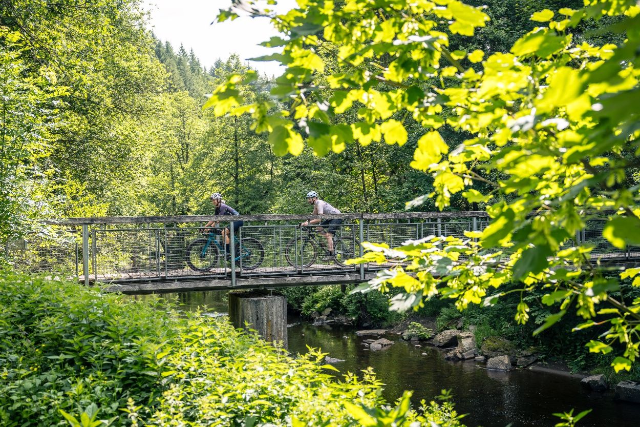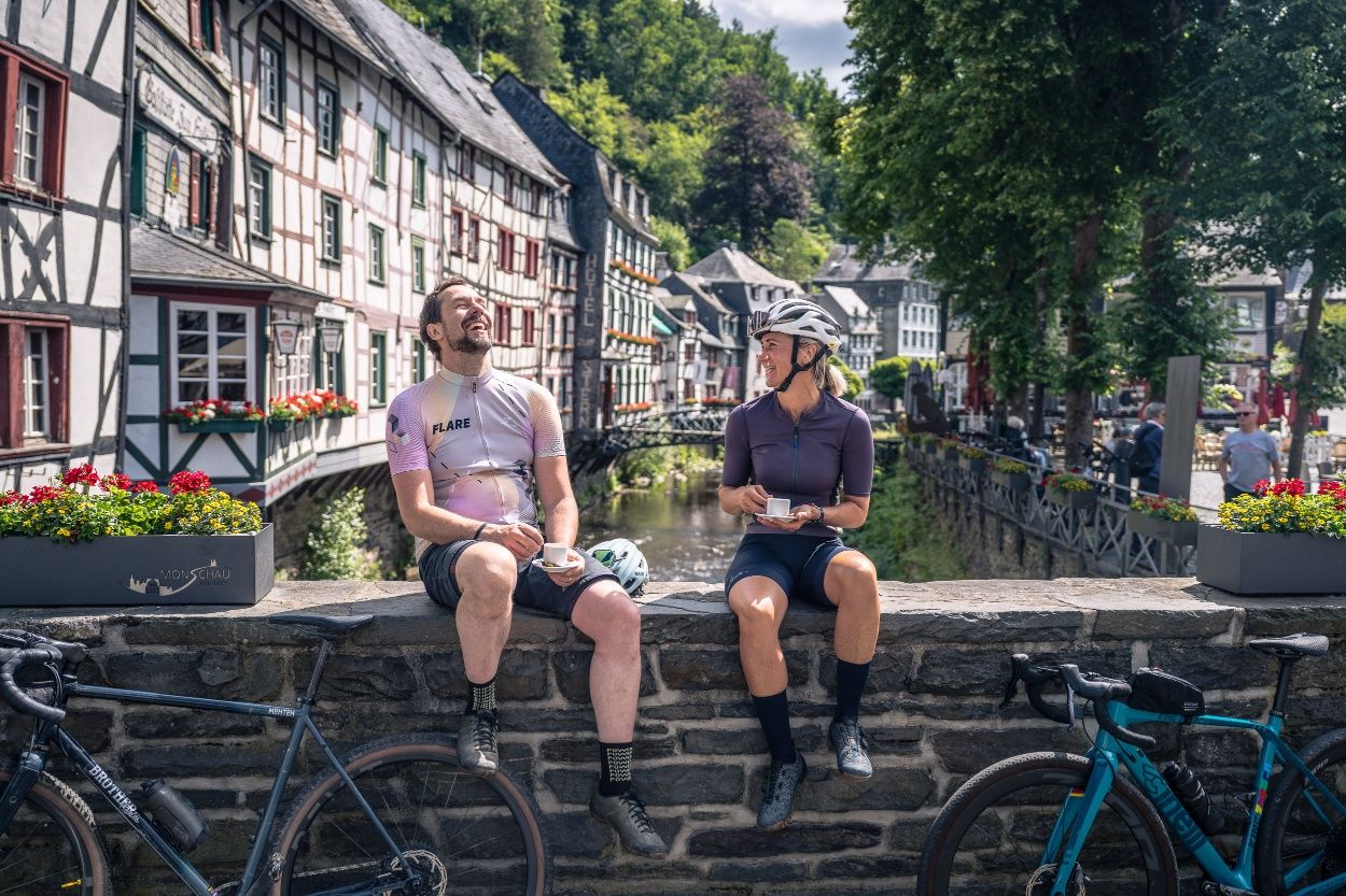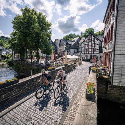 Diese anspruchsvolle Graveltour mit abwechslungsreichen Berg- und Tal-Profil verbindet knackige Anstiege, wilde Abfahrten und echte Eifelmomente – von der historischen Altstadt Monschau bis zum verwunschenen Baumlehrpfad im Rurtal.
