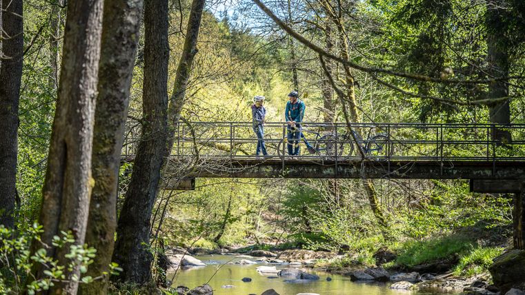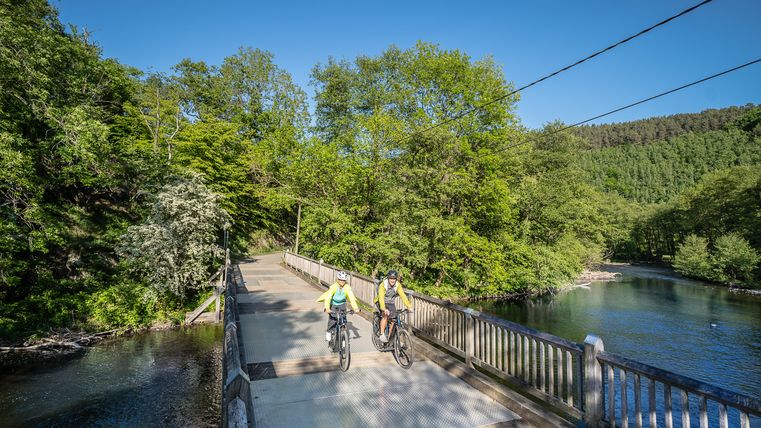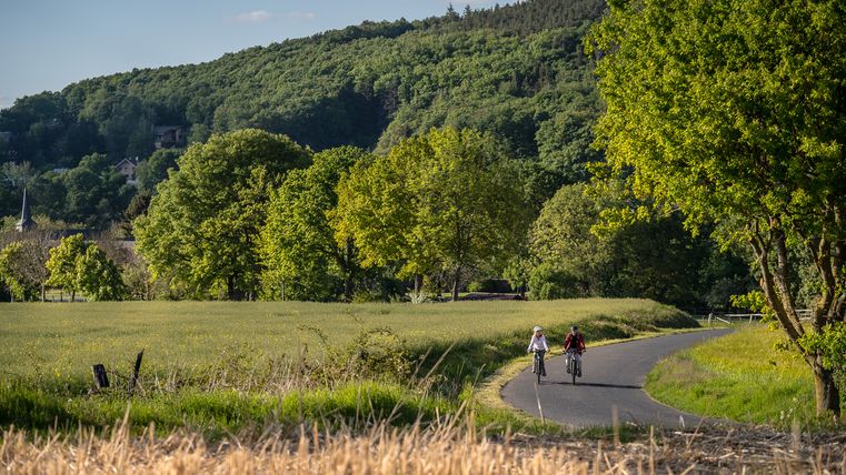 Drei Länder – ein Fluss: Beim Radwandern auf dem RurUfer-Radweg zwischen der Quelle im Hohen Venn bei Botrange (Belgien) und der Mündung in die Maas bei Roermond (Niederlande) ist die Rur ihr ständiger Weggefährte.