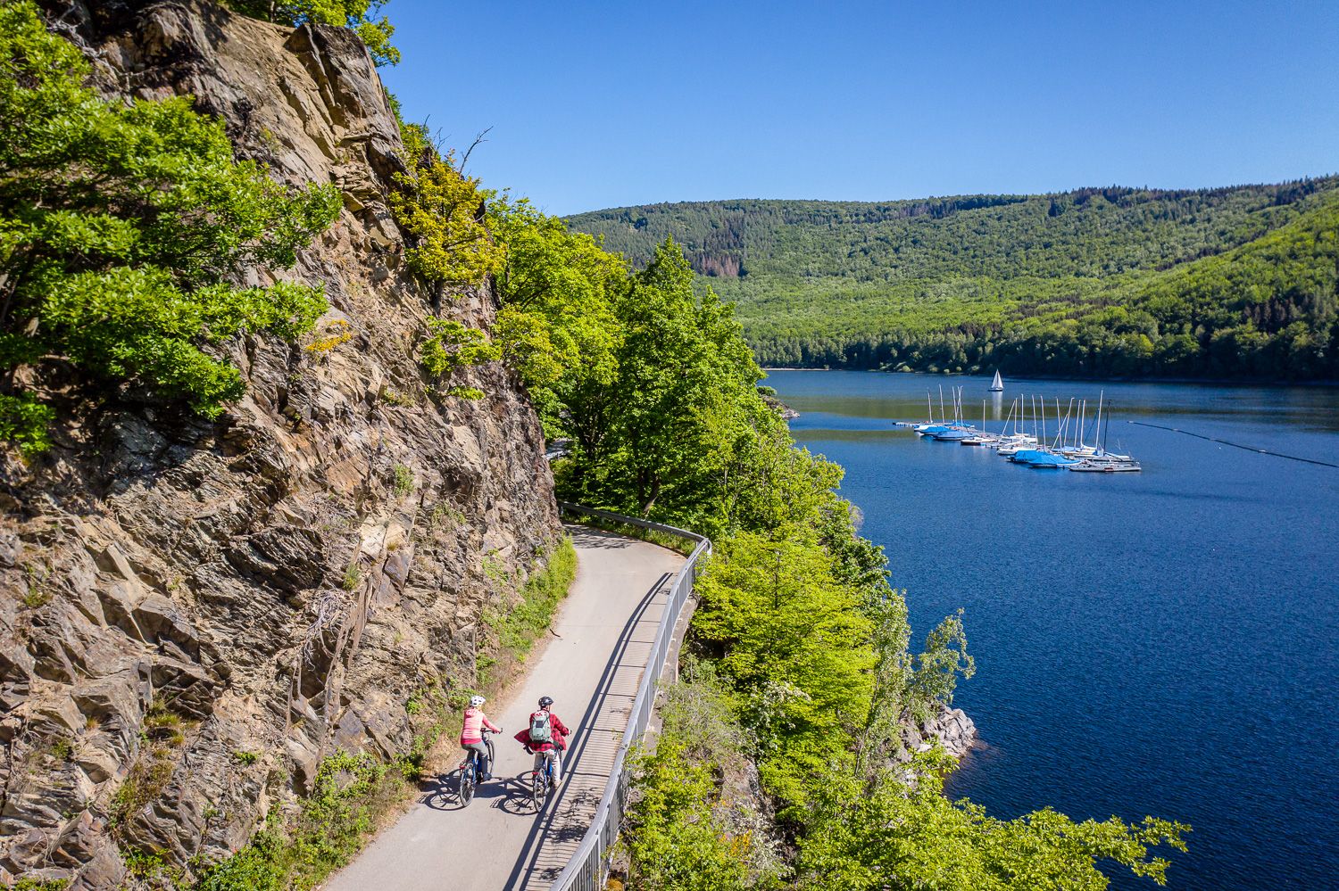 Von der Quelle im Hohen Venn in Belgien bis zur Mündung im niederländischen Roermond führt der RurUfer-Radweg auf rund 170 Kilometern durch abwechslungsreiche Naturräume, geschlossene historische Stadtkerne und landschaftliche Idyllen. Beginnend an der Aussichtsplattform "Signal de Botrange", dem höchsten Punkt Belgiens, steuert der Gast nach waldreichen Abschnitten die alte Tuchmacherstadt Monschau an. Stets die Rur zur Seite, breitet sich ab Einruhr die Eifeler Seenplatte und der Nationalpark Eifel vor dem Besucher aus. Durch einzigartige Landschaften wie die Jülicher Börde und das indeland zeigt sich auch der weitere Verlauf auf der letzten Etappe durch das Heinsberger Land bis in die Niederlande als sehr fahrradfreundlich.