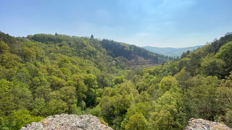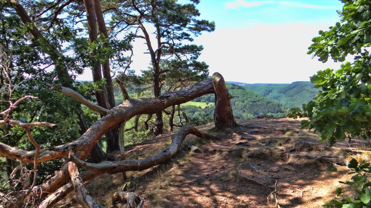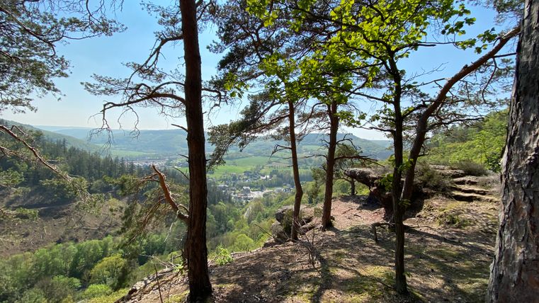 Step 3 – Nach der Stärkung überquerst du die Rur und dann heißt es Aufstieg! Die Anstrengung lohnt sich jedoch. Dich erwarten spektakuläre Felsformationen aus Buntsandstein. Du gelangst zum Hindenburgtor, das vor etwa 220 Millionen Jahren aus Schuttgeröll und Sand entstanden ist. Danach kommst du zum Felsplateau Christinenley. Von hier aus hast du die beste Aussicht auf die abwechslungsreiche Natur. Ein weiteres Gruppenfoto darf nicht fehlen.