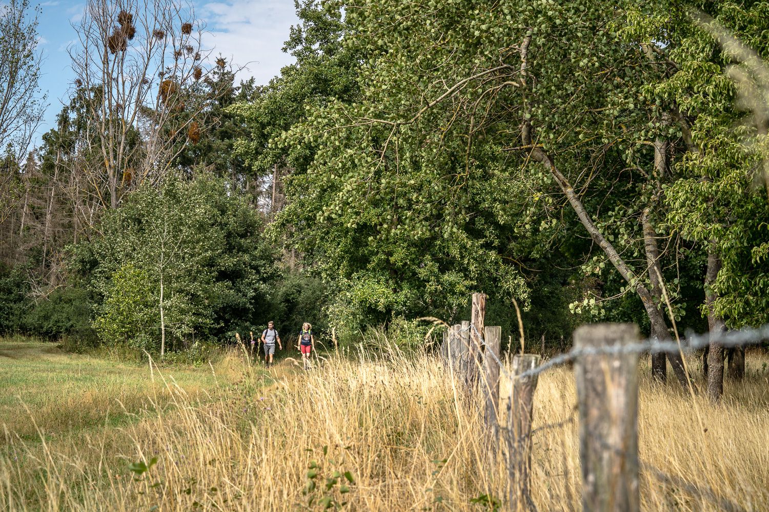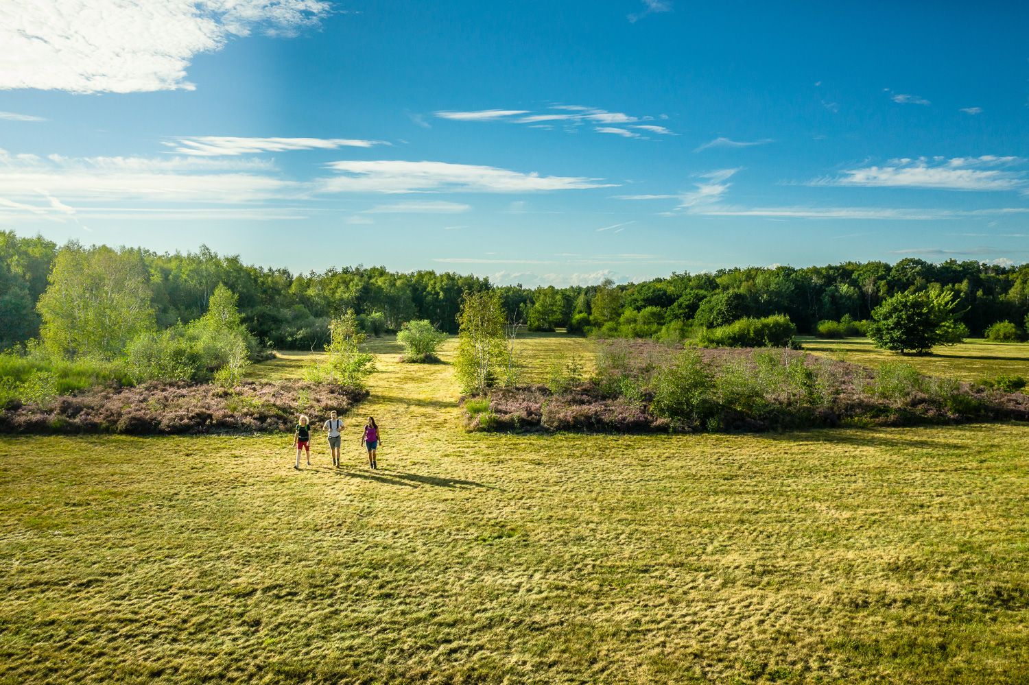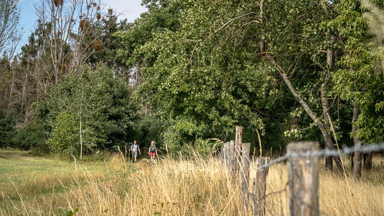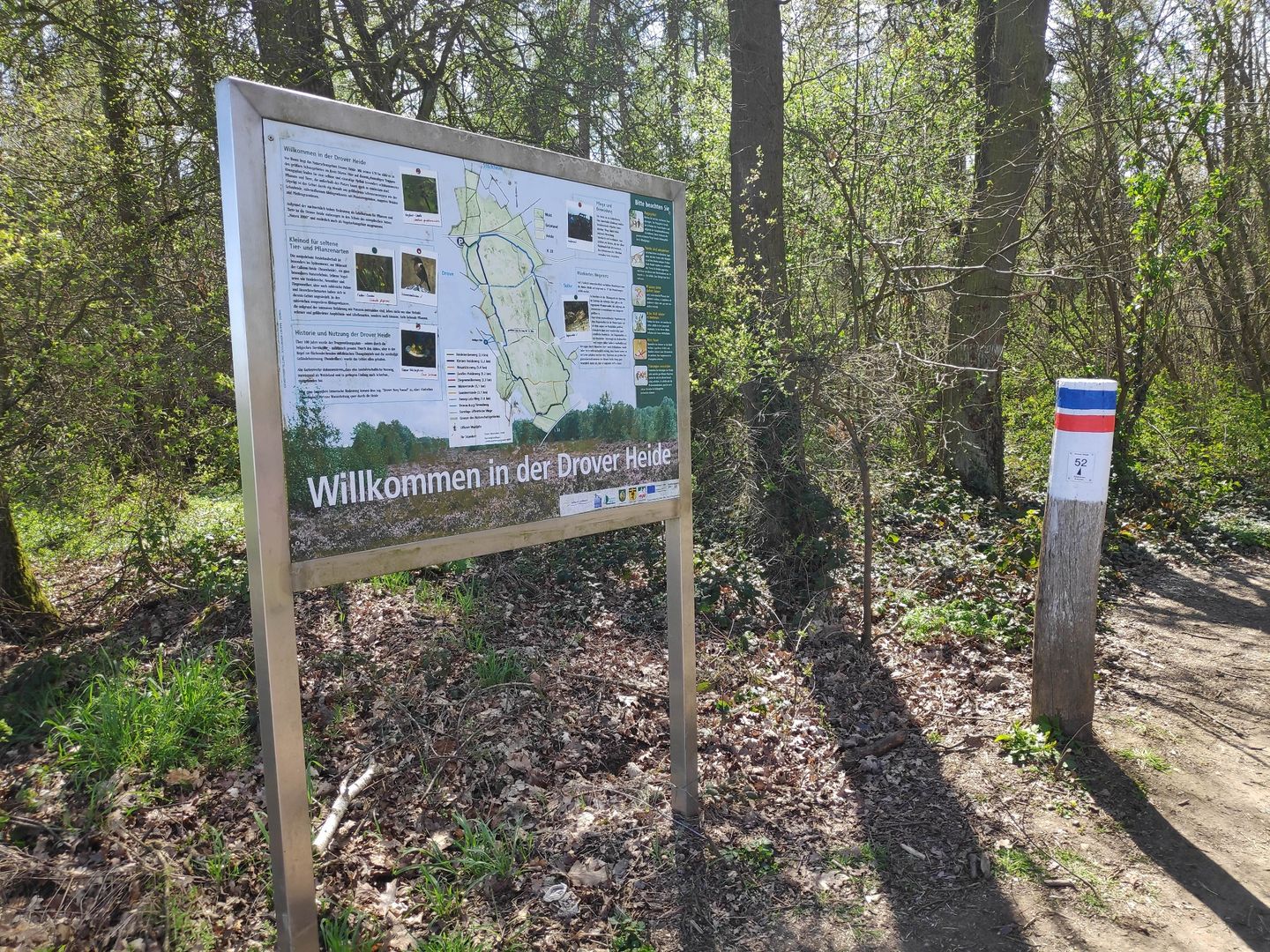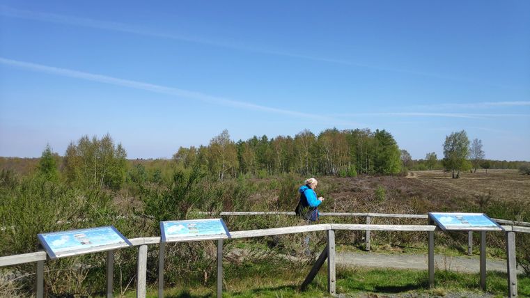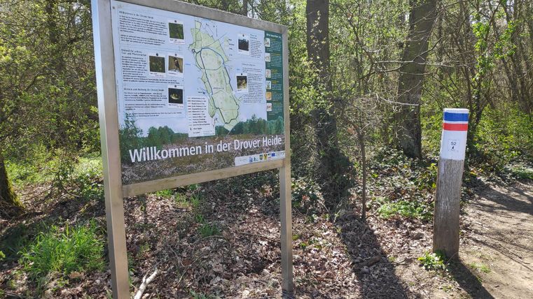 Die ebenen Wanderwege durch die offene Drover Heide, über Wiesen und lichte Wälder, führen teilweise über Holzstege und bieten besondere Einblicke in den Lebensraum seltener Flora und Fauna.