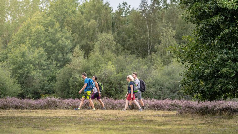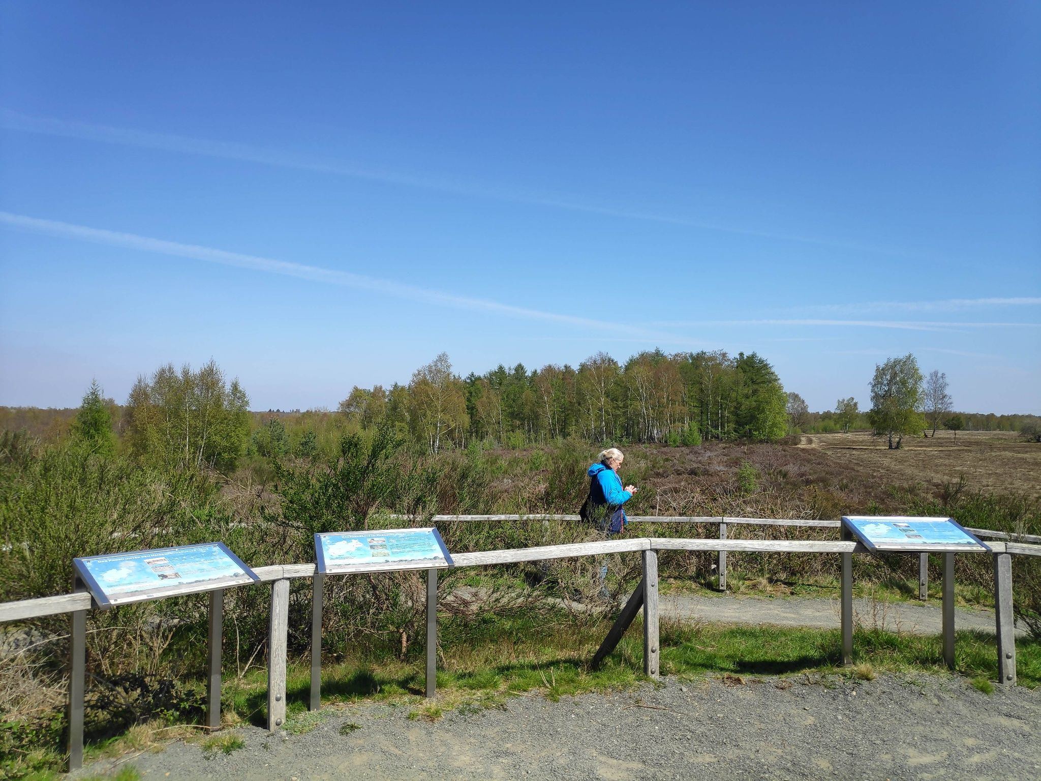 Wir halten uns weitgehend an den vom Eifelverein markierten Rundweg Nr. 52 bzw. an die dunkelblaue Markierung des großen Heideweges. Auf unserer Wanderung laufen wir auf gut ausgebauten Wegen durch eine abwechslungsreiche Landschaft. Die ebenen Wanderwege durch die offene Heide, über Wiesen und lichte Wälder, führen teilweise über Holzstege und bieten besondere Einblicke in den Lebensraum seltener Pflanzen und Tiere.