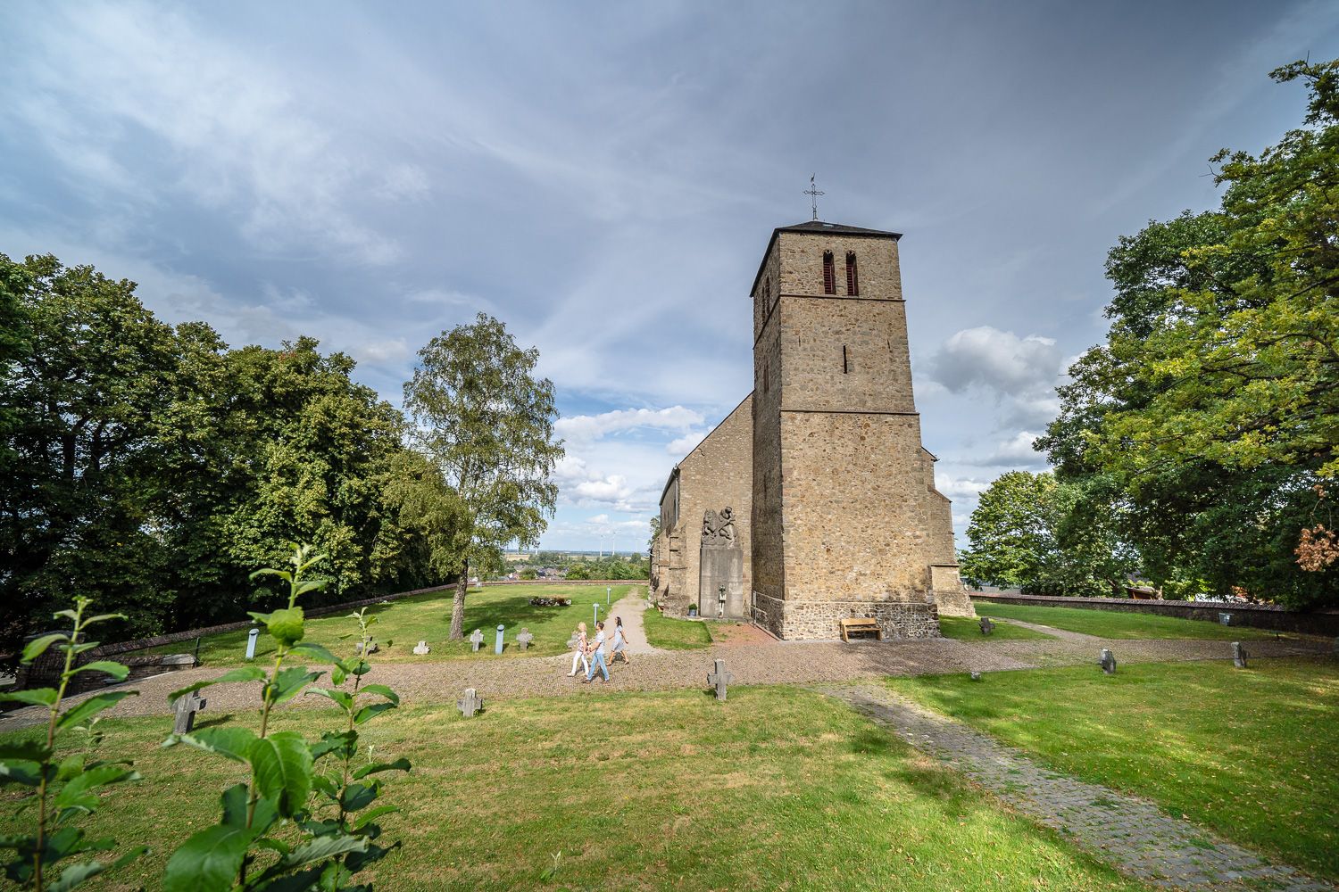 Einen Stopp lohnt das Schloss Merode, das bei einem Brand im Jahr 2000 erheblich beschädigt wurde und von den Eigentümern sukzessive wieder instand gesetzt wird. Das prachtvolle Wasserschloss ist Stammsitz der heute weit verzweigten Prinzen von Merode und ist überregional bekannt durch seinen Romantischen Weihnachtsmarkt, der alljährlich auf dem Schlossgelände stattfindet und im Jahr 2011 zum schönsten Weihnachtsmarkt von NRW gewählt worden ist.