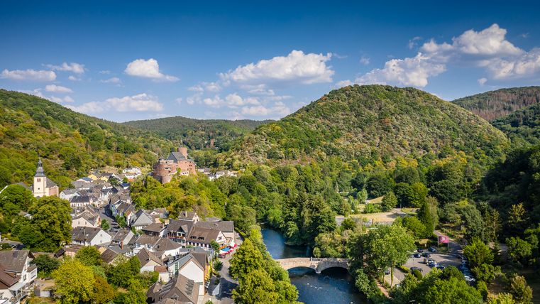 Die Wanderstrecke durch den Badewald ist auch eine Zeitreise, denn hier findet man interessante geologische und archäologische Spuren. Die Landschaft ist typisch für die Rureifel: von Kiefern gesäumte Waldgraswege, Weiden und Obstwiesen, garniert mit schönen Ausblicken ins Rurtal. Aber auch Sagen und Legenden sind hier zuhause. Lassen Sie sich verzaubern!