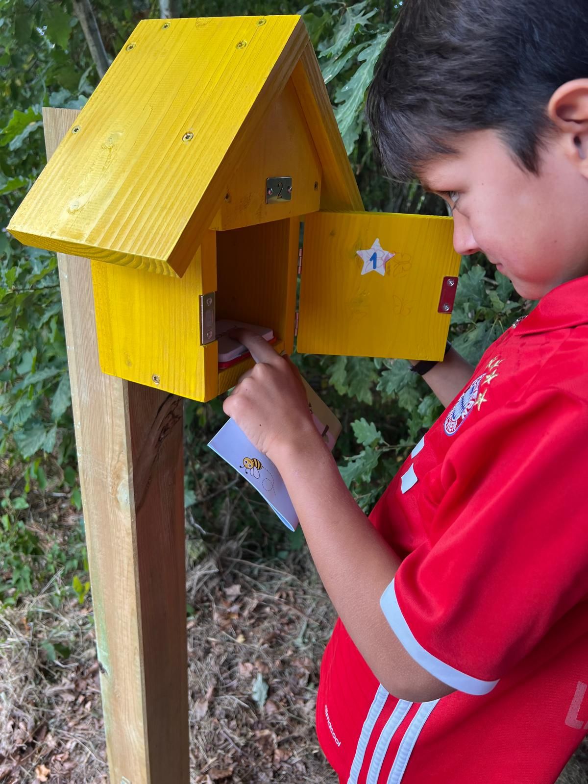 An vier Stempelhäuschen ist im Heft ein Sternchen markiert. Dort finden die Kinder zusätzlich eine Zahl, die sie sich merken müssen. Am Ende des Weges ergibt die Kombination dieser Zahlen den Code für einen Schatzschrank. Darin befindet sich für jedes Kind eine kleine Belohnung. Die Belohnungen werden zu einem Großteil von den Rohrener und Widdauer Landfrauen und den Landmädels liebevoll in Handarbeit hergestellt, zum Beispiel kleine gehäkelte Bienen.