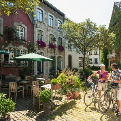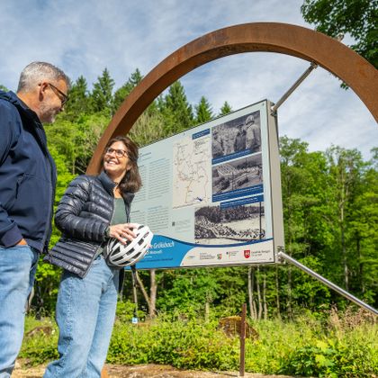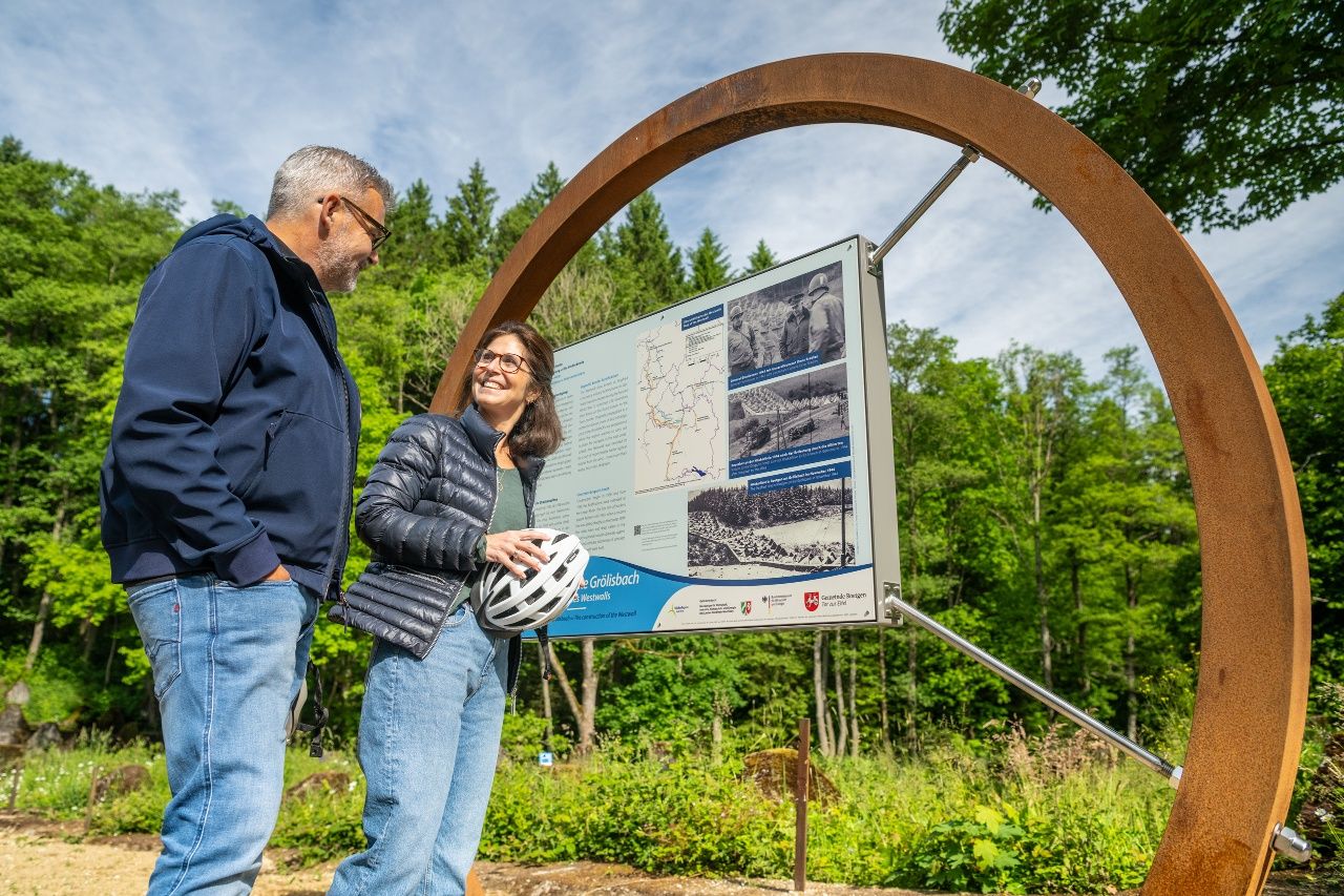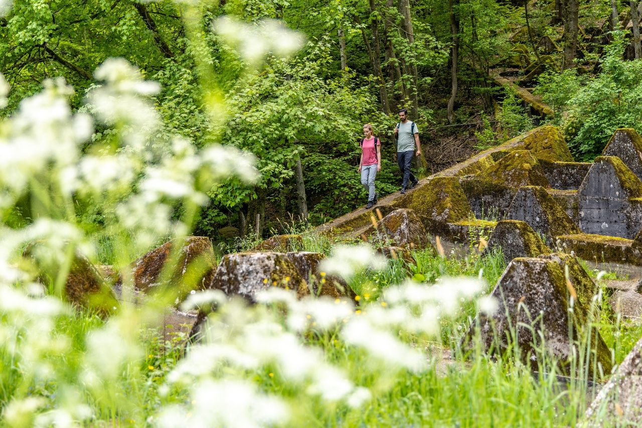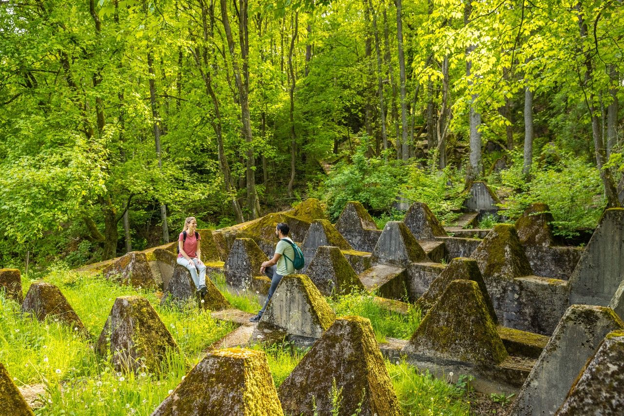 Die Tour beginnt in Roetgen, dem „Tor zur Eifel“. Hier lässt sich Freiheit gleich im doppelten Sinne erleben: Die zur Gemeinde gehörenden Ortschaften Roetgen, Rott und Mulartshütte sind ringsum von einem der größten zusammenhängenden Waldgebiete des Landes umgeben – Wander- und Radbegeisterte können hier frei die Schönheit der Natur erkunden. Auch aus historischer Sicht weht hier der Geist der Freiheit: Am 12. September 1944 marschierten amerikanische Soldaten vom belgischen Raeren-Petergensfeld kommend nach Roetgen ein, seitdem gilt Roetgen als erste befreite Gemeinde Deutschlands im Zweiten Weltkrieg. Eine Ausstellung an der Wanderstation erzählt eindrücklich von diesem historischen Moment. Nur wenige Kilometer weiter stößt du auf die Westwallbrücke am Grölisbach – ein Ort, an dem du mehr über das gewaltige Verteidigungssystem erfährst, das einst die Landschaft prägte. Ebenfalls erleben kannst du hier, wie sich die Natur den Westwall zurückerobert hat und heute sogar Lebensraum für seltene Tier und Pflanzenarten bildet. Die Route führt dich weiter durch ausgedehnte Wälder bis ins idyllische Kornelimünster. Auf dem Rückweg begegnet dir bei Schmithof erneut der Westwall, bevor du – teils über belgisches Gebiet – zurück nach Roetgen gelangst.