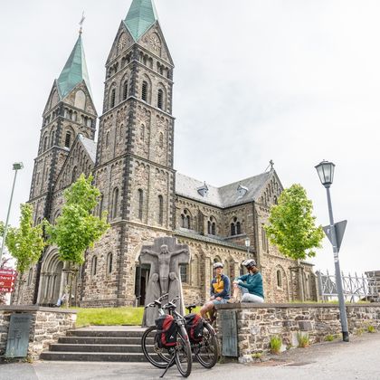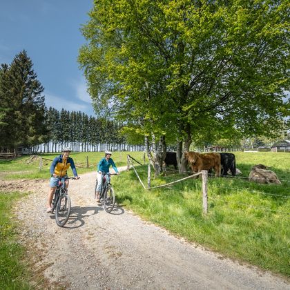 Weiter folgen wir dem Verlauf der Rur bis nach Einruhr und durch den Nationalpark Eifel, wo von Buchen geprägte Wälder den Weg säumen. Landschaftstypisch sind auch die zahlreichen imponierenden meterhohen Haushecken innerhalb der Siedlungen, die als Windschutz für die einzelnen Höfe angelegt wurden sowie ein ausgeprägtes Flurheckensystem, das Felder und Wiesen durchzieht. Der Eifeldom verkündet das nahende Ende der Tour.