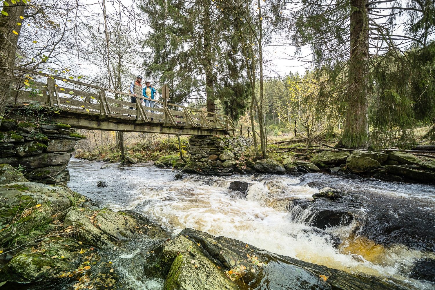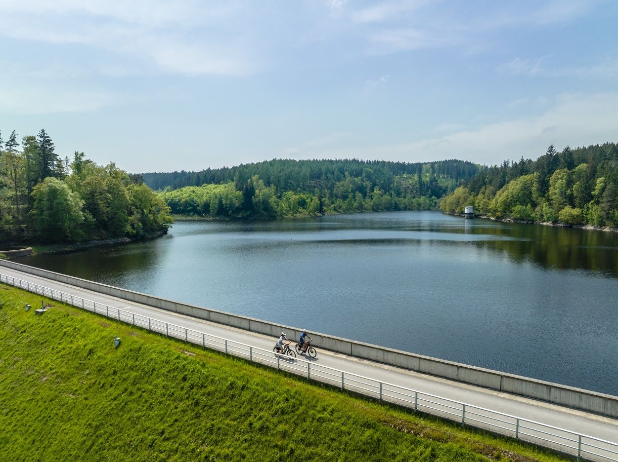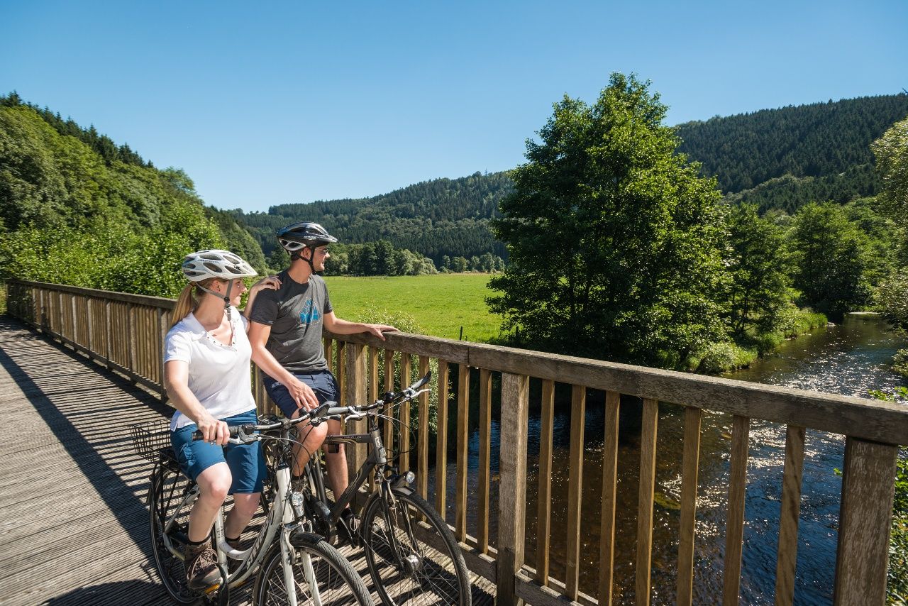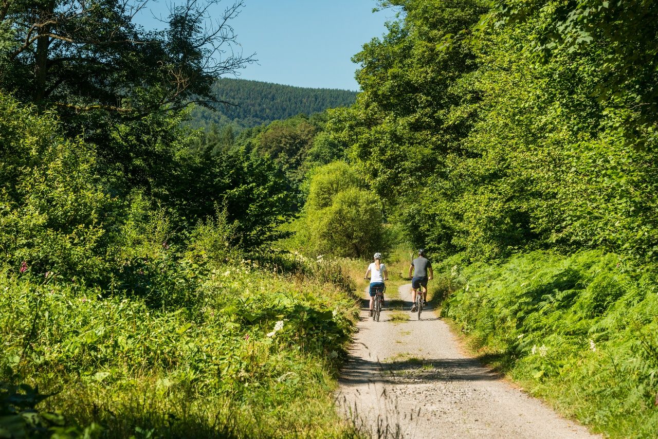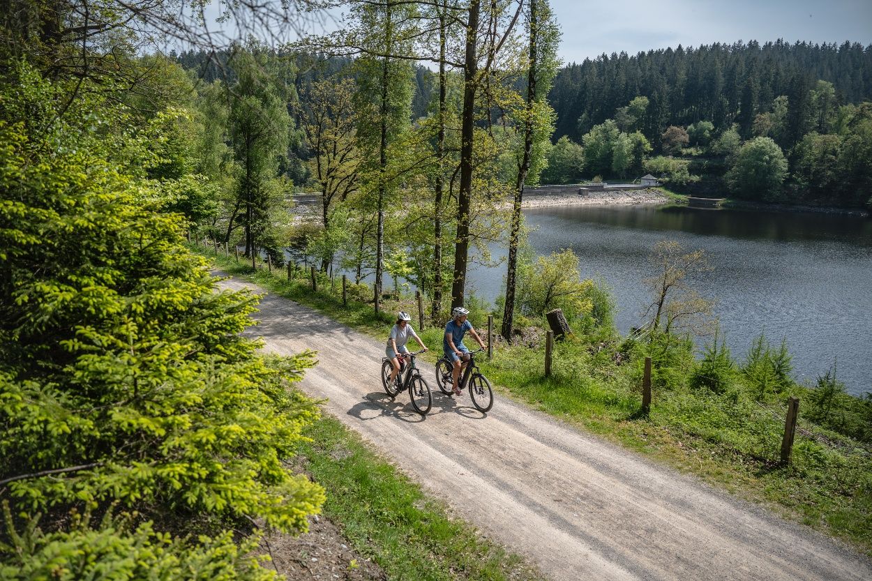 Die Tour beginnt im Luftkurort Einruhr – klare Quellen, frische Luft und der Rursee direkt vor der Tür. Von Einruhr aus geht es nach Woffelsbach, wo sich die Wasserkraft von ihrer lebendigen Seite zeigt – als Energiequelle, Naturerlebnis und Freizeitspaß. Weiter führt dich die Route zur Kalltalsperre, wo du mehr über den Wasserkreislauf der Wälder erfährst – ein Ort, an dem Natur und Technik auf besondere Weise ineinandergreifen. Entlang des Paustenbacher Venns, durch weite Moore und stille Bäche, erreichst du schließlich Monschau. In der historischen Altstadt öffnet sich ein Zeitfenster in die Epoche der Tuchmacherei, als das Wasser der Rur die Webstühle antrieb und das Leben in der Region prägte. Durch das idyllische Rurtal geht es zurück nach Einruhr. Am Ende der Tour kannst du im Wassergarten beim Heilsteinhaus die Füße baumeln lassen und die heilsame Kraft des Wassers in aller Ruhe auf dich wirken lassen.
